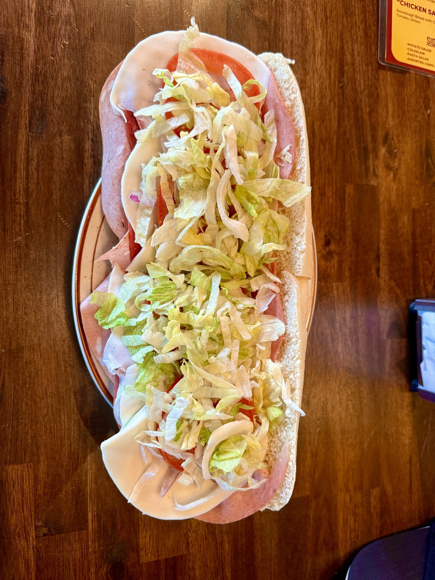 Read moreAfter reading reviews on this deli, and being interested in their premise I drove from Nashville to Columbia on Saturday, March 8th 2025. It was not worth it at all. I ordered a turkey sandwich with gouda cheese and mayo. Very simple, only three ingredients, and the proportions were huge. Unfortunately this resulted in a hugely inadequate sandwich. The cheese still had the paper on it, which is not appetizing to eat at all. The bread was also very dry, and started crumbling almost immediately making it difficult to hold. The turkey was honey roasted, this isn't really bad, just not what I was expecting. The menu just says turkey on it, and as it does not specify that it is honey roasted I expected it to be plain turkey. I did not appreciate finding this out through eating it, and would prefer that the menu mention this. I would not have gotten the turkey if I had known. Overall I got a better sandwich, with better bread, and better turkey from Jersey Mikes. A chain restaurant. I think it would have been cheaper too.
