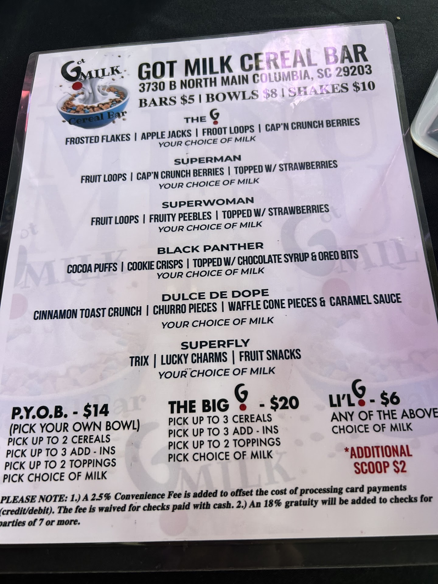It's a fun concept but it just falls flat. First they are EXTREMELY overpriced for what you get.. I mean it's cereal at the end of the day. The menu says milkshakes are $10 (which is nuts already) but the lady wanted to charge us $14 đ”đ€Ż because my son wanted to pick his own cereal. Then his cereal was super stale. Mine was just weird because all the cereal gets super soggy and gross. I honestly can't say I would recommend this place. I really try to support small businesses but this one i just...