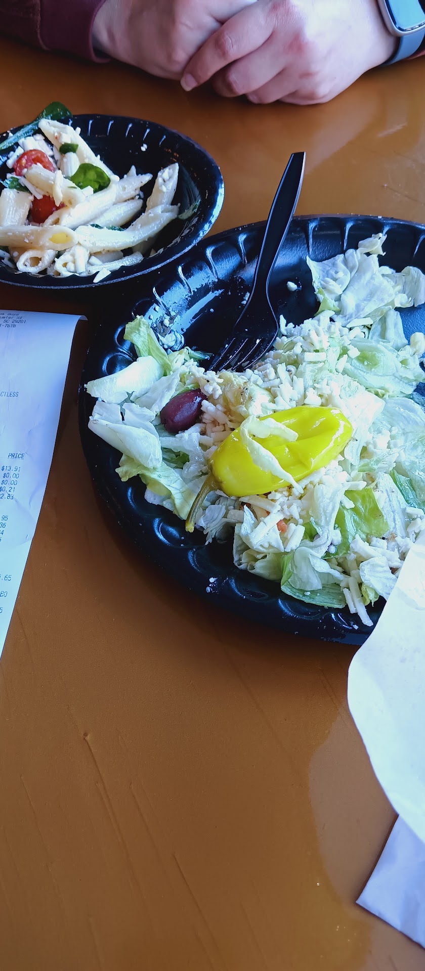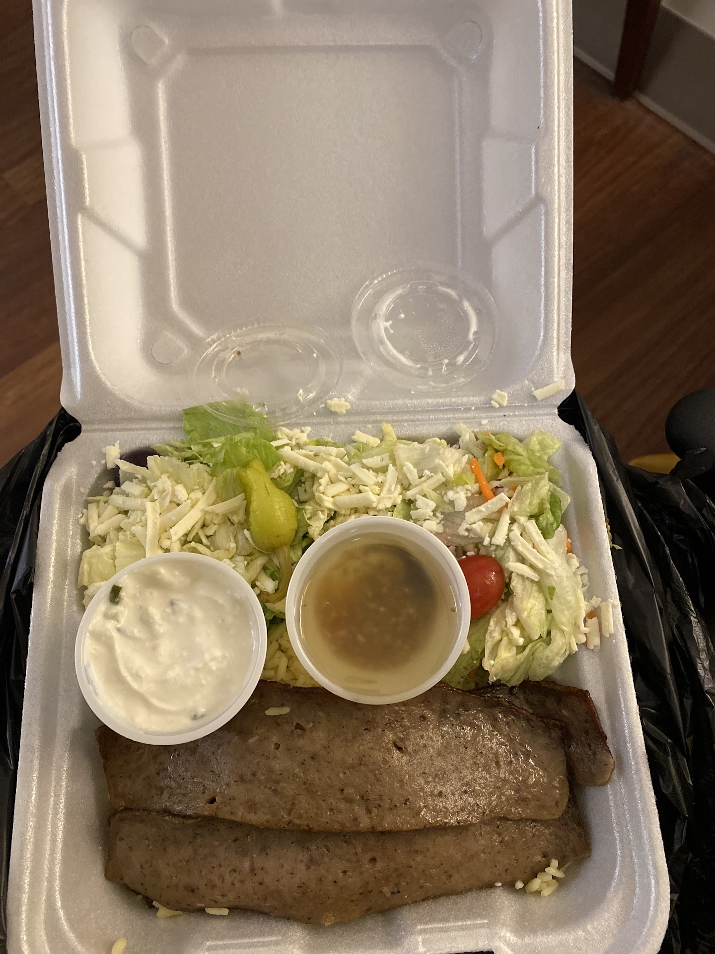 Read moreThe smell coming from down the street was very alluring and is what brought me inside to try it out. But I have to say overall I'm very disappointed in the authenticity of the food. As a reference, I will say I have been to Athens ( and the surrounding area) and Cyprus, so I know what real Greek food should taste like. I ordered the gyro sandwich and the pasta salad and my companion got the Greek salad. I was not impressed in the quality and taste. What I got was what I would have expected 2 be served if i ordered a Greek style entree from an All-American restaurant like Shoney's or Applebee's. I could tell straight away that the gyro meat was from a prepared package and not sliced from a rotisserie.