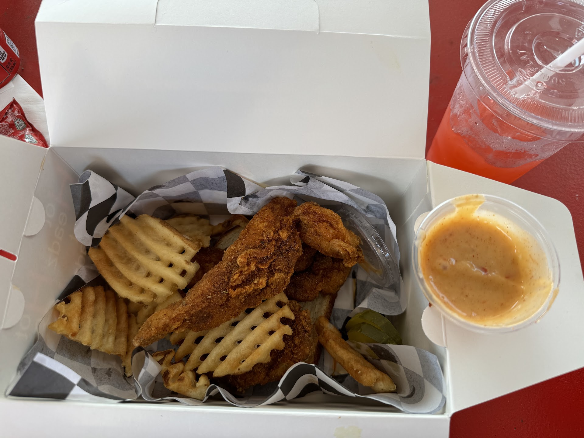 Read moreTook mine to go. This is a sandwich you need to sit down and eat! One of the hottest 🔥🔥🔥 sandwiches I have ever had in my life (and I LOVE spicy food). Typically my food is never spicy enough, but not today!! You will need water or italian ice or something behind this one!! Besides that, I've never had slaw on a chicken sandwich and I think I now want slaw on ALL of my chicken sandwiches!!! PeriodT!!!!!! And I absolutely loved the fries! Thank God for that, water, and popcorn because my mouth was on real...