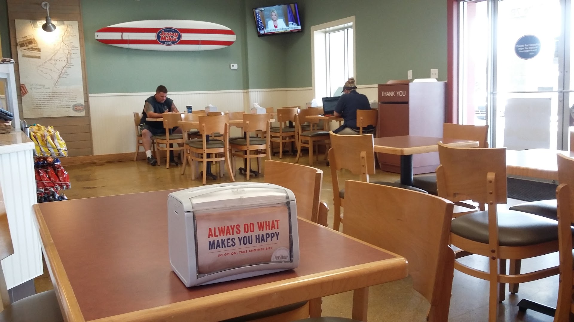 Read moreThis was our first time trying Jersey Mike's and I was very disappointed. I got one mini and two regular subs for my family to eat. There is very little meat on the sandwiches and the meats were very salty tasting. The sandwiches were much smaller then the footings that we were used to getting elsewhere. Everything was sliced very thin including the cheese. The staff was very friendly and everything was nice and clean but the cost to eat their sandwiches was very expensive. You have to order a giant sandwich and pay almost $15 for one sandwich in order to get enough to eat. When you're feeding a family of three that becomes a little costly. The bread was very hard. My disabled daughter had to pull the sandwich apart and eat just the meat and cheese because she couldn't chew the bread it was so hard. I would definitely not go here again. I did not feel that we got a quality sandwich for the amount of money...