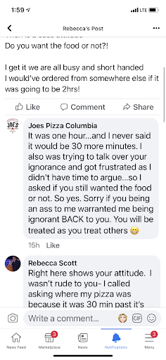The owner is rude! Apparently her customers donât matter. But her online orders do! No need to be rude and ask a customer who has waited 30min past the deliver time to call in to ask where her pizzas are at- her smart as$ reply- do you want the pizzas or not? Yep I wanted them before 2hrs and wanted them when I was told by âyouâ they would be here in 45 min! We spent a ton of money on pizza here for the last 4 yrs- looks like we will be finding a place where the owner doesnât act like she is in HS!