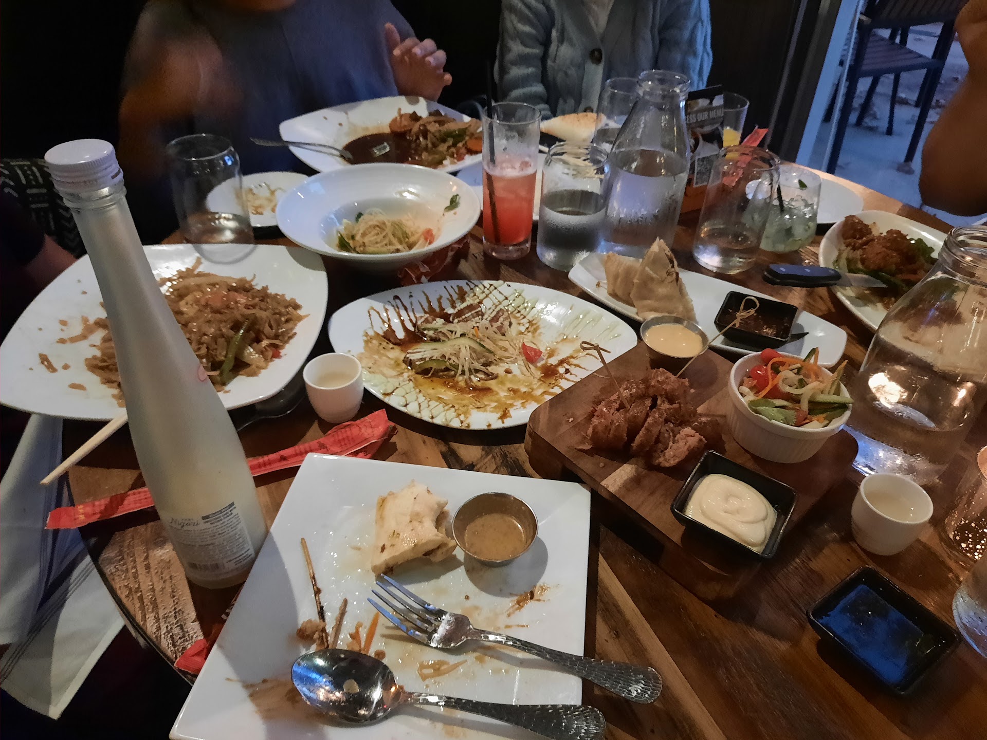 Read moreRead moreWhere to start. Not only was the parking accessible and the general location low key, but this hidden gym of Thai cuisine is a must visit. We started our visit going on a Tuesday during happy hour (4-7pm). There we had the Mai oh My (bourbon based) and Pattaya Sunrise. The cocktails were refreshing and stuck true to the usual sweet taste one would expect from cocktails with Asian roots. The apps were special priced and I’ll tell you, I would pay full price. The Shrimp Shuami (fried steamed) were pretty chill and the real winner was those crispy Brussels sprouts. Usually Brussel sprouts are tangy and soft but these were sweet and had a good crunch. Next we had our entrees and let me tell you, the umami was bursting from the seams. Pictures is the Chicken Pad Thai and the Lychee Duck Curry. They were so kind to let me add shiitake mushrooms and the duck literally pulled off the bone. The curry came with a side spice options and I normally don’t get to have the chance to add what I want. As someone who looks aimlessly for curry that balances the nasal cleaning powers with the sweet and tangy coconut, this was the motherload. We finished with the molten chocolate cake (I’m told it was great but wasn’t allowed a bite) and the matcha cheesecake was similar to that of of making a green tea cheese cake shake. The beer selection was great and to find a place with LoaBeer is extremely difficult. Lastly, the service was top notch. Nicole not only participated in our banter and kept the service coming, but helped us with varying decisions and was cheerful. Nicole made the overall experience amazing and I would make sure to come here anytime I come back into town. 5/5 recommend for lite fare, drinks, and dinner. Make sure to tip...