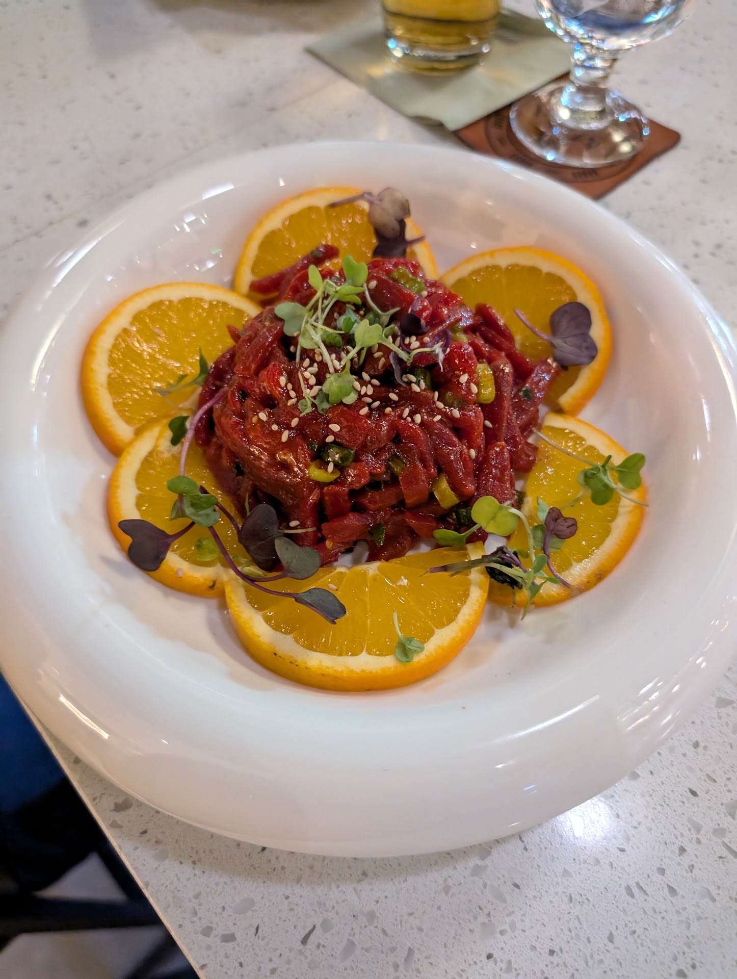 When we arrived there were not many tables full at all. As this was our first time with this type of experience, we asked for an explanation of the menu and how the ordering worked. Our server gave a brief overview and whisked away. The server filled our glasses with water and my partner ordered coffee, specifically asking for oat milk, they didnt have so Soy milk was settled upon. By the end of our dining and the 2nd cup of coffee NOT having soy milk, my partner became instantly violently ill.