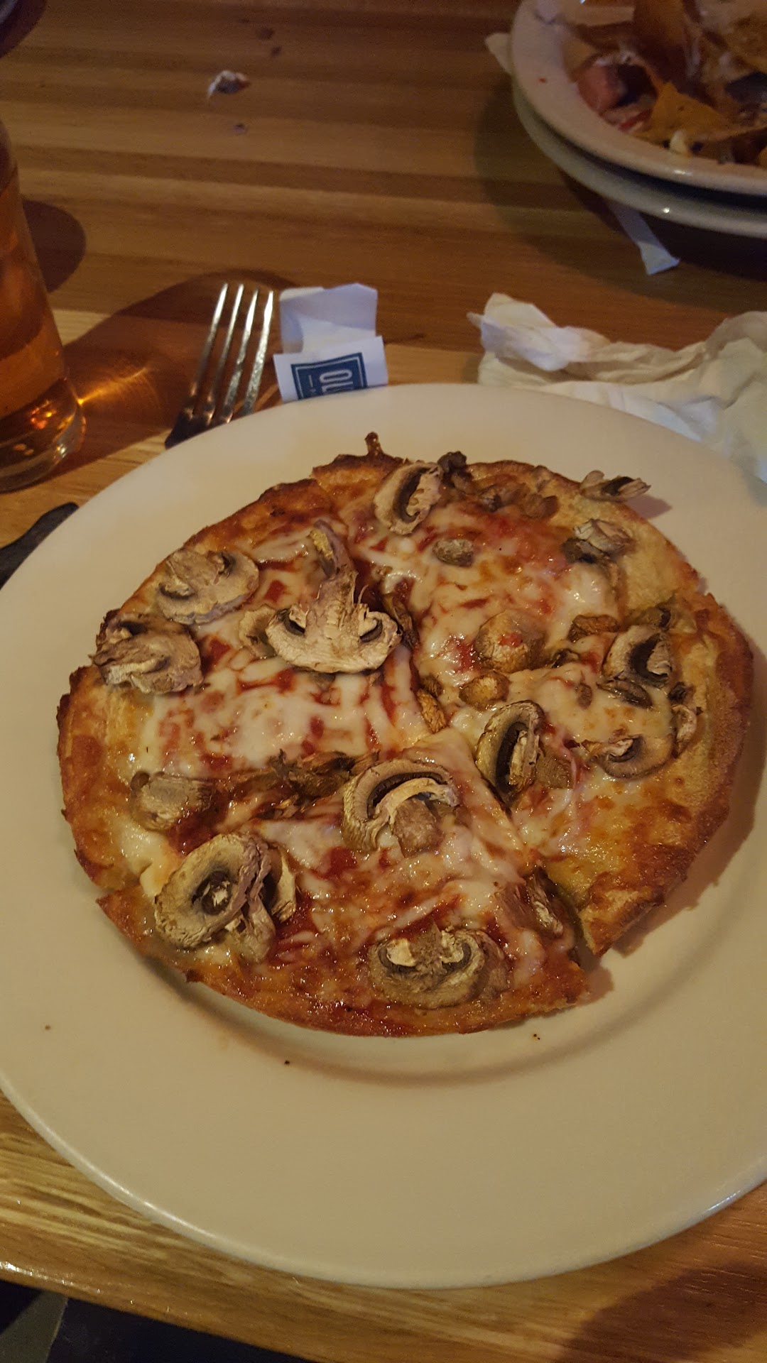 Ok, so we moved here 9 months ago and have been on the hunt for decent pizza ever since. We had high hopes for this place. The wait was not bad which we appriciated, but the food...oh man. We started off with Magners cider for me because it is not often that I find it on a menu. It was barely cold. My husband wanted the "hand crafted soda" and we were excited because we have had this before at BJ's and it is fabulous. We asked the server what flavors they offer and the girl looked at us as if we spoke a different language. She had us point it out on the menu and said she didn't know because she had never served one before. Instead of offering to find out she just stood there as if we were to pick something else. We had to ask her if she could find out for us. She asked the bartender and came back and said they had rootbeer and cream soda. We went with cream soda. When she brought our drinks, it was not hand crafted, but bottled IBC!! Seriously? That is machine crafted!! We laughed it off and ordered some nachos for an appetizer and individual sized pizzas for dinner. The nachos were good, except the cheese was not on the chips but melted in blobs all over the bottom of the plate. We easily picked it up and ate it, which was fine, but messy. And we had no napkins or silverware so that was a problem. I ordered Chicago style pizza w mushrooms and he had thin crust w pepperoni. The photo showed canned type mushrooms which is what I like but they came out the dry kind you put on salads, which I can't stand. So i picked them off and tried to eat the cheese pizza. It tastes exactly like pizza hut pizza. Not the good early 90's kind, but todays type that is up there in quality with little ceasars. And if you look at the photo, tge cheese looks a bit processed as it did not loose it's shape when it was melted. You can't use fake cheese on pizza wgen the name of tge restaurant is "Old Chicago"!! My husbands thin crust pizza tasted like it had lots of sugar on it. Very strange. I think that for the first time that I can remember, we actually left 75% of each pizza on the table when we left and refused to go boxes. That blows my mind! We spent 50$ before tip on this stuff. We could have had a nice steak for that! On a side note, a weird thing happened when the waitress comes over with a sample glass of Son of A Peach beer and says "I just wanted to give you this, it is Son of a peach" and then walked away. Not really sure why she gave me that, but it too was very very warm. All in all I say this is a never going back restaurant on our list. And if anyone out there knows of any decent pizza, please please...