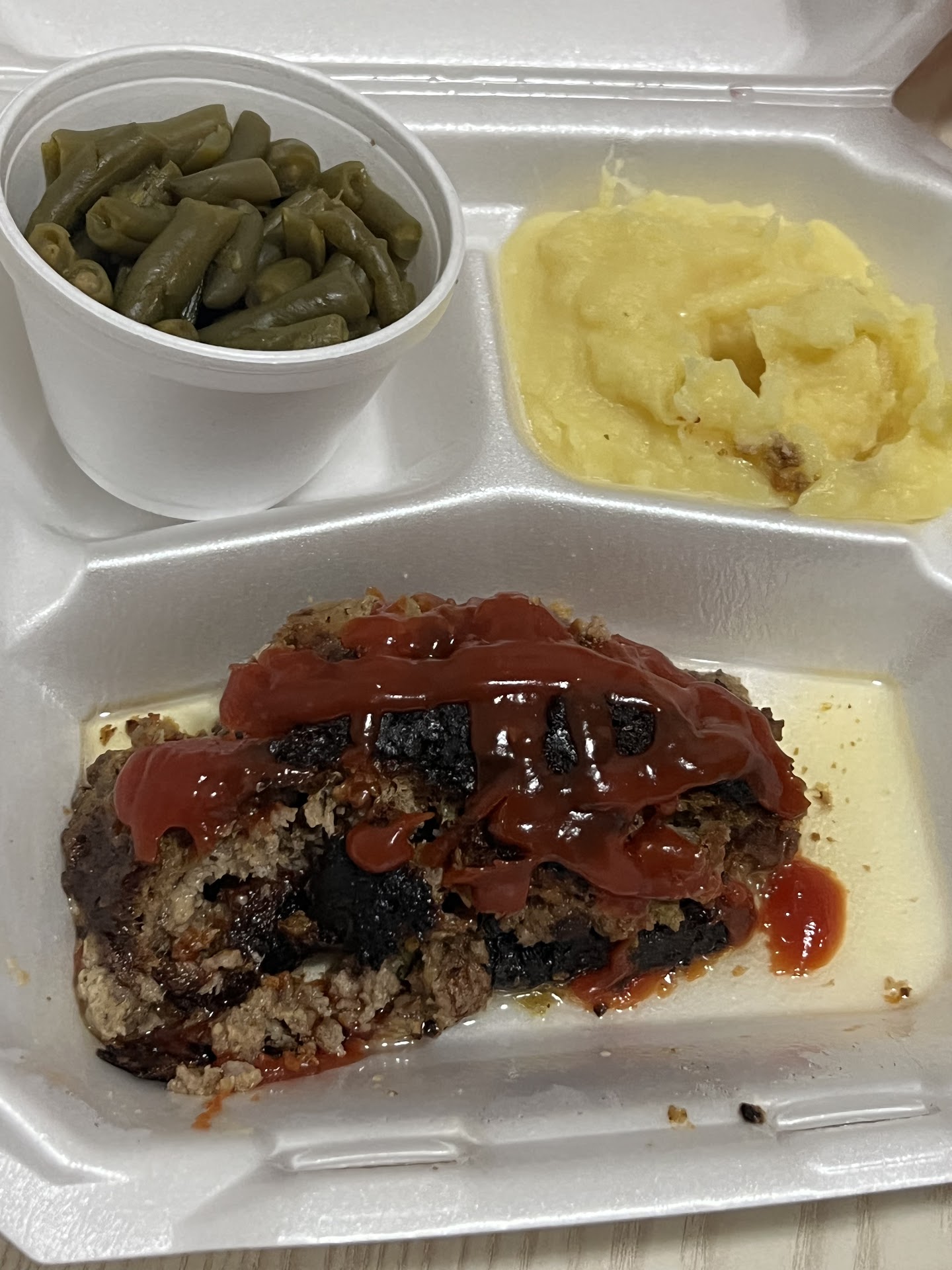 Read moreI’ve gotten take out orders from this location before and have never had an issue with quality of food. However, this experience was not the same as you can see from the photo of the burnt meatloaf. I’ve ordered the meatloaf two times before, and it was fabulous. This time…not so much. It seems like there may be an issue with consistency. I say this because the last two times I received meatloaf, it was in the form of a slice. With this experience, it looks like it was in the form of its own individual loaf, which would be fine if the quality of the finished product was as good as previous experiences. Two stars given because the mashed potatoes were great, and the catfish that my mother ordered was delicious. Ultimately, I would still order from there as this is the first (and hopefully only) time i’ve had a...