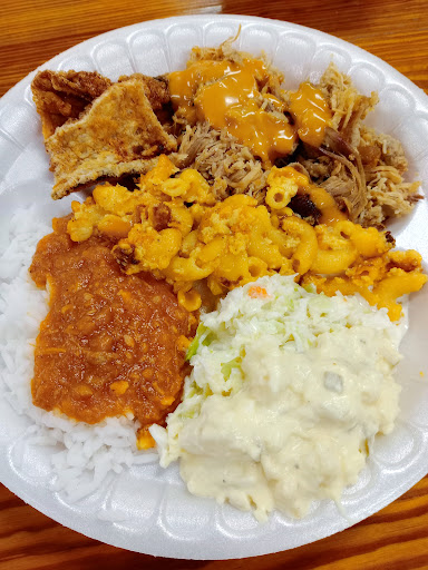 Read moreTerrible. I paid over $15 for a small wing, 3 ribs, a plate full of slop (hash and rice), 2 hush puppies, and a few fork fulls of mushy macaroni, and a side of water. The ribs were tough and dry The chicken was VERY small The Mac N Cheese was just mushy macaroni with burnt shredded cheese mixed around in it, usually in clumps. The "BBQ" sauce was actually some Mustard concoction which was awful. I don't know anyone that thinks of mustard when they think of BBQ, but I was sadly disappointed. Here I am in the South and I couldn't get a solid BBQ meal? There were a few silver linings: the water was cold and free, the hush puppies were pretty good, they have this mush that is called 'Hash and Rice' that is good for a handful of bites but then gets too heavy and repetitive. Oh yeah, the roll they gave me was tiny and firm. The only reason I rated Service 'Good' was because the girls that helped were smiling and ready to take my order. That was the only interaction I had with them though. I will NEVER go back here, even if they offered free...