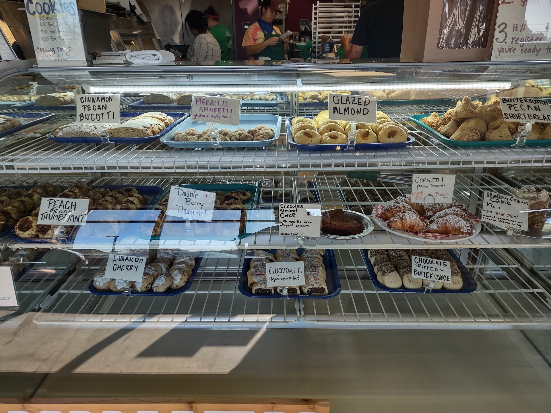 I got a giggle on how they label their sizes for carry-out meals. Instead of small, they call it Light and a large is called, Hungry. I was tempted to get something to eat, but I just had brunch around the corner at Ozark Biscuit. They offer; soup, salad and pasta. I can only imagine how delicious their food would be. I however, did try their cookies and biscotti and both were excellent. I bought a bag of Biscotti Bits to take home and they're a perfect accompaniment to morning coffee.