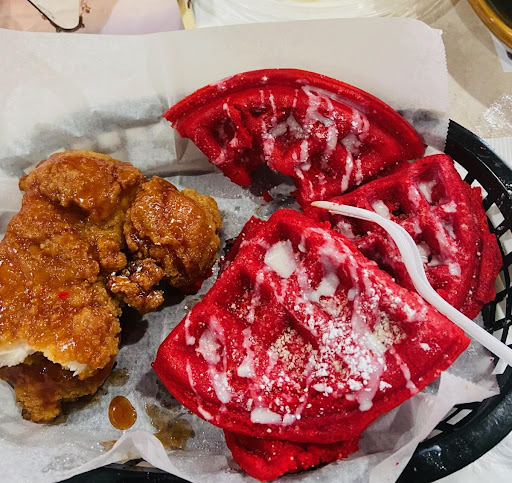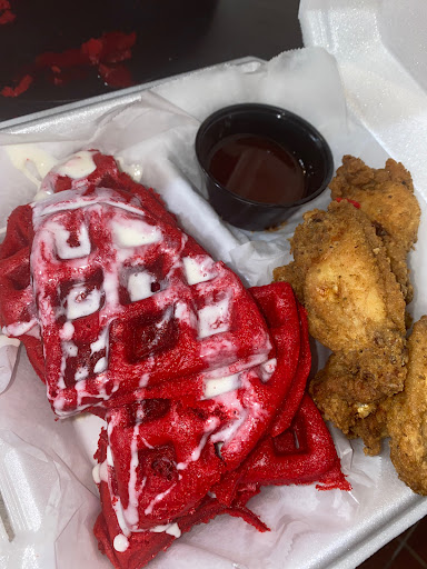 Read moreIâm not sure if we went on an off day, or because it was a rainy week day and business was slow, but the 5 star taste reviews were not our experience. First of all, I called ahead and when we arrived 25 minutes later- we still had an almost 30 minute wait and there were no other customers there. That wasnât a huge deal because we had time. However, that should be said when phone orders are placed. The food looked good and the 1st wing I ate tasted good and I was hopeful. We ordered 3 meals. 2 regular with lemon pepper wings. And 1 red velvet with buffalo wings. That first chicken wing gave me false hope. Those wings were certainly refried and thatâs my issue. They were all dried down to the bone. That irritated me so much because we went on my daughterâs graduation from the base & she didnât even eat it. The ladies there were very sweet, but DO NOT refry chicken...
