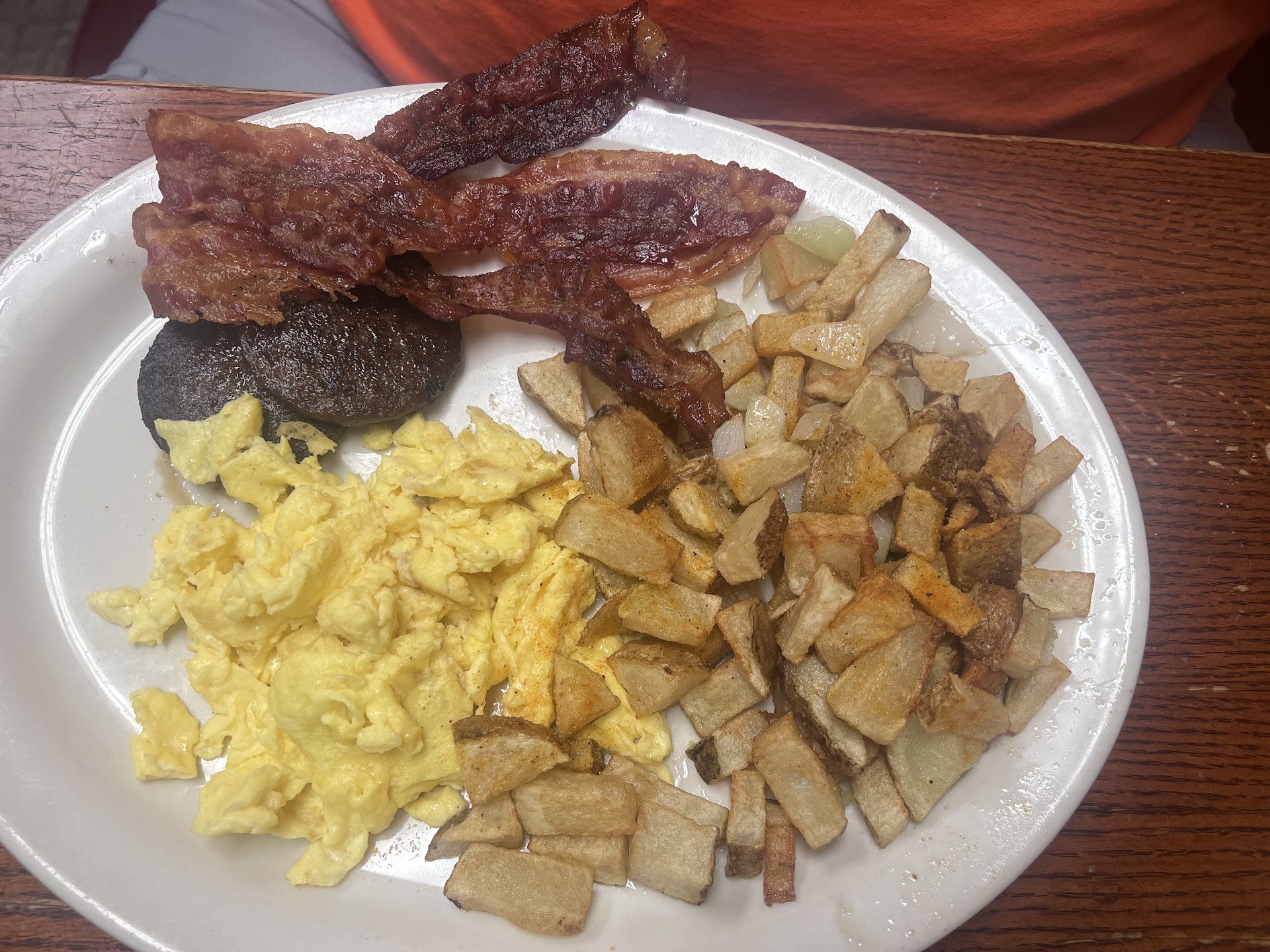 Read moreI had high hopes from the reviews. I ordered gravy side, no bread, hashbrowns and western omelet, with sweet tea. Seat yourself at booths or a little table. Plenty of parking lot parking. Not their finest dining moment. I hate to say this without a photo, but my first instinct when I saw something black and wirey looking sticking out of my hashbrowns was to put it out, look at it and quickly get it off of my fingers. I took an original photo when food came out and can kind of see the issue but I did not notice until I started eating and moving the food. Service was fine. Some people came in for to go’s and some ate inside.