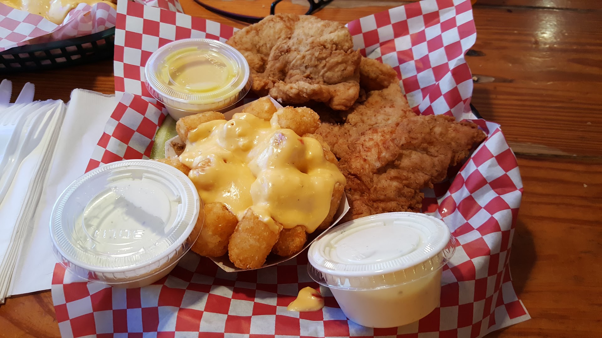 Read moreSo the food was really good. Little surprised everything was on paper products. Usually colleges are pro save the earth. I got a burger and ate it for 2 days haha the fries were soggy and not really flavorful. The tots on the other hand chefs kiss My sister got wings and had nothing but good things to say. They had a deal on wings if your a wing lover you should try it. Now when it come to how I felt while in there, that's different. It is clearly for college people and I'm ok with that. But I felt because I was not a college student and do not look like the others I didn't get the same energy as everyone else. (just for ref there were other noncollege students there but they were parents an not P.O.C) could have just been us but definitely didn't finish eating...