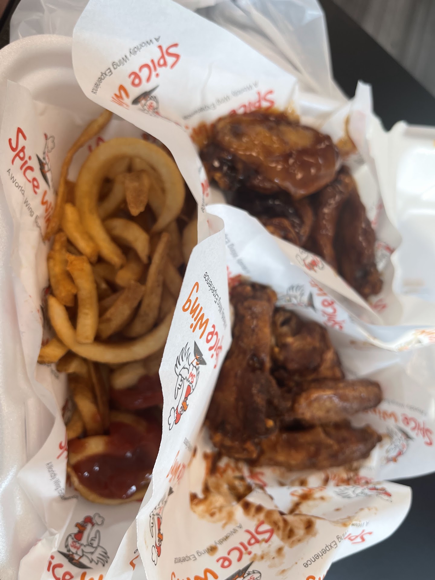 Today, for Fatherās Day, my wife was going to cook me some homemade hibachi, but I mentioned eating out today, because it had gotten so late, I didnāt want her to have to labor in the kitchen for me all night just for, āFathers Day,ā especially being that sheās pregnant. So, she said well we can eat out and I can cook tomorrow. So, we decided that we were gone order from American Deli, only to find out they were closed, but because we wanted chicken, this spot, āSpice Wing,ā is what we ended up going with. I spent $60+ on: 1.) 15 piece wing combo with regular fries (w/ 5 of the wings being boneless) (lemon pepper spicy wings & the boneless was hot honey)..2.)10 piece wing combo with regular fries (lemon pepper dry wings)..3.) An order of Mozzarella Sticks 4.) A Larger order of waffle fries 5.) An order of curly fries 6.) An order of fried okra .. I think thatās all.. but I digress, because of the long list, & I want to cut to the point! This was the worse food Iāve had in a while. My fries were all chewy as if theyād been cooked in old grease and left out after. The fires were basic and extremely reminiscent of store brought frozen fries. The chicken wings were not small and were too big for my liking. I have suspicions, because of how ALL the fries tasted, that the chicken may have not been cleaned, as they didnāt taste fresh. The mozzarella sticks were not fully cooked, had chewy cheese, and taste like store brought frozen mozzarella stick. My wife is vegan, so she wanted the okra and waffle fries, and her fries too were trash, when I tasted them. All the fries Tasted the same, even though we ordered 3 different kinds. We warm up our food in the oven, not the microwave, and when my wife warmed her food (particularly her okra) up in the oven, the taste of the fried okra, she said, changed, however she said the fries tasted better than they originally had (said she added seasoning), but she no longer desired anymore of the okra. This was one of the worst decisions Iāve made in my life when it comes to ordering out. My experience made me never want to visit this establishment again. I rarely ever, (unless Iām asked) leave reviews, but I had to with this one man. I only ate the food, because I paid for it. I couldnāt eat all of it though. Thankfully my son enjoyed his lemon pepper, but he a kid and he will eat chicken to the gristle, because he loves it lol. š They gotta do better at this spot. They get a 2 out of 10 and Iād...