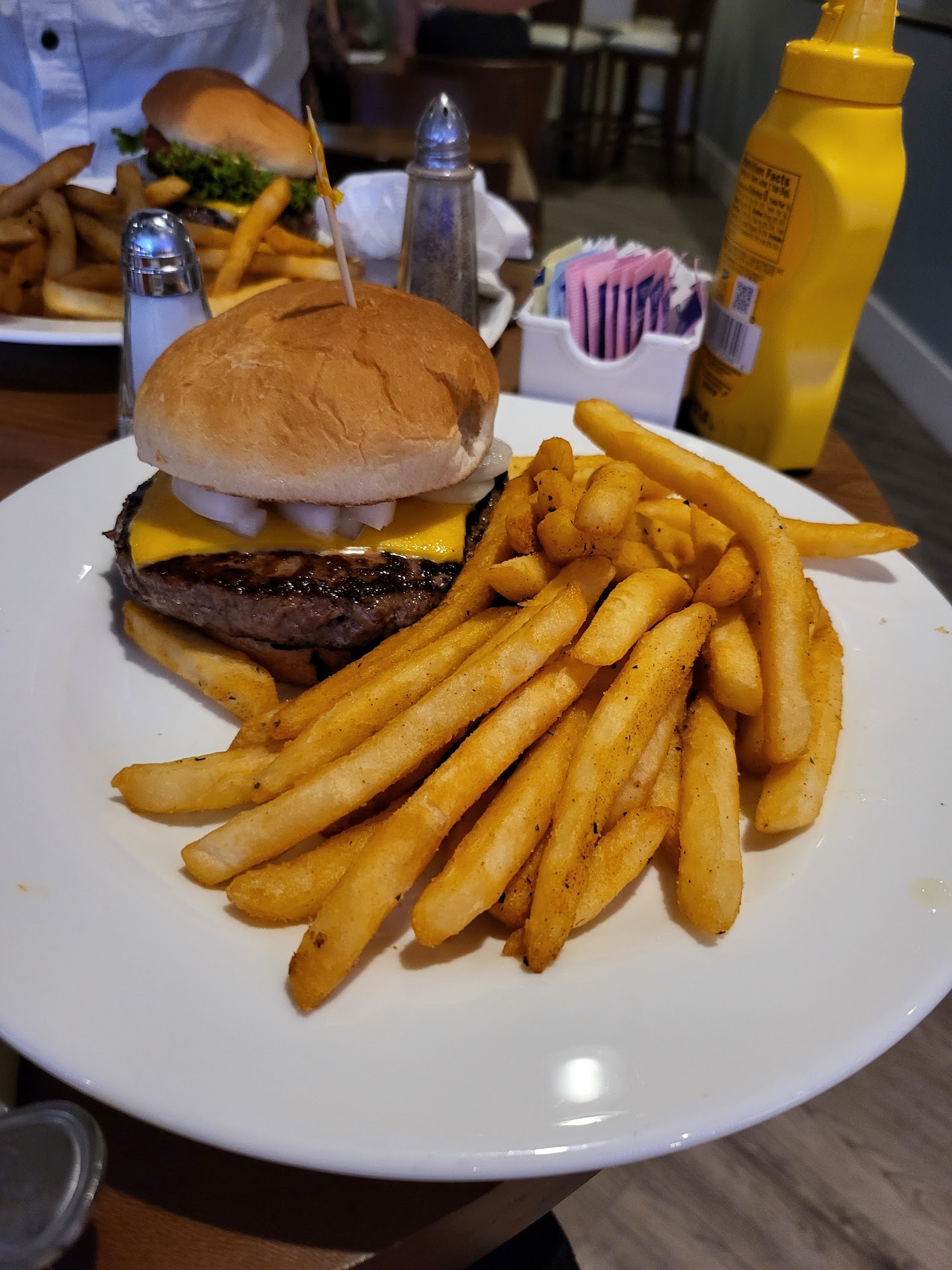 Jadyn, who was bartending as well as handling the numerous bar tops was an absolute rockstar! She greeted us with a smile right as we sat down, let us know she would be right with us. She made me a perfect old fashioned, took our food order, and went back to hustling to take care of all the other guests. Our food came out quickly for how busy they were, and exceeded our expectations. We both got their burgers, that were huge for the price. They were seasoned perfectly and cooked with a nice sear. The buns and toppings were fresh and tasty. The fries were crisp and also well seasoned. I meant to take a picture before I started eating, but it looked too good and I was famished. So apologies for the picture not doing it justice. Truly it was a fantastic dinner. The best part however was the service from Jadyn.