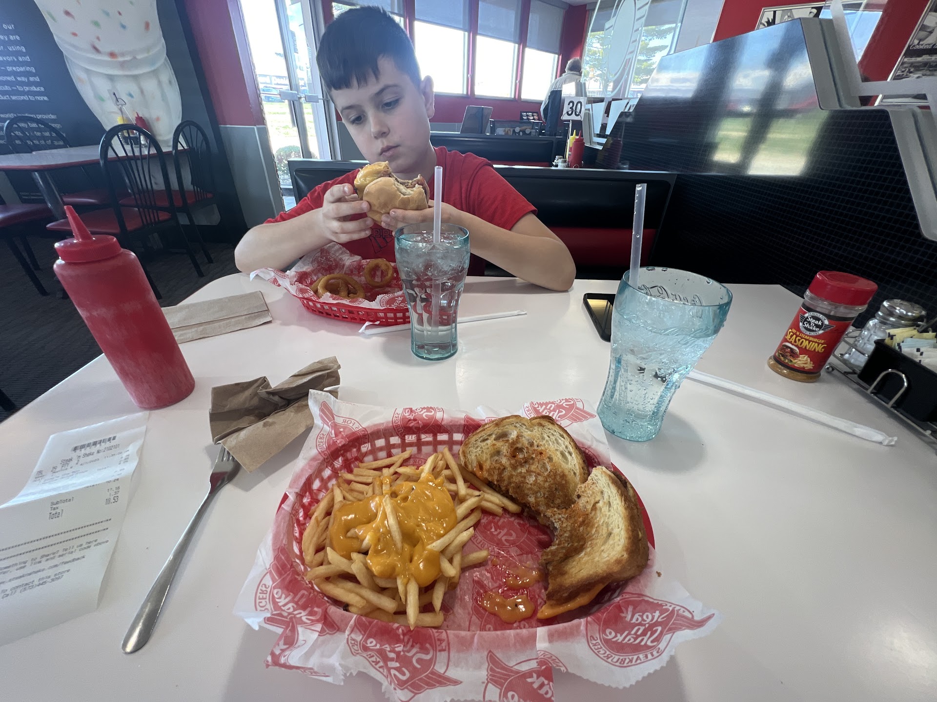 You've entered the restaurant. The lights are dim and there is a lonely couple in the corner enjoying their own melted milky water. A glimmer of hope sends tingles up your spine. You walk to the counter and just as soon as you were convinced things could turn out OK, you're "greeted" with a bleak "Welcome to Steak n Shake" and then dismissed just as quickly after the cashier gives you about ten percent of her effort and attention.