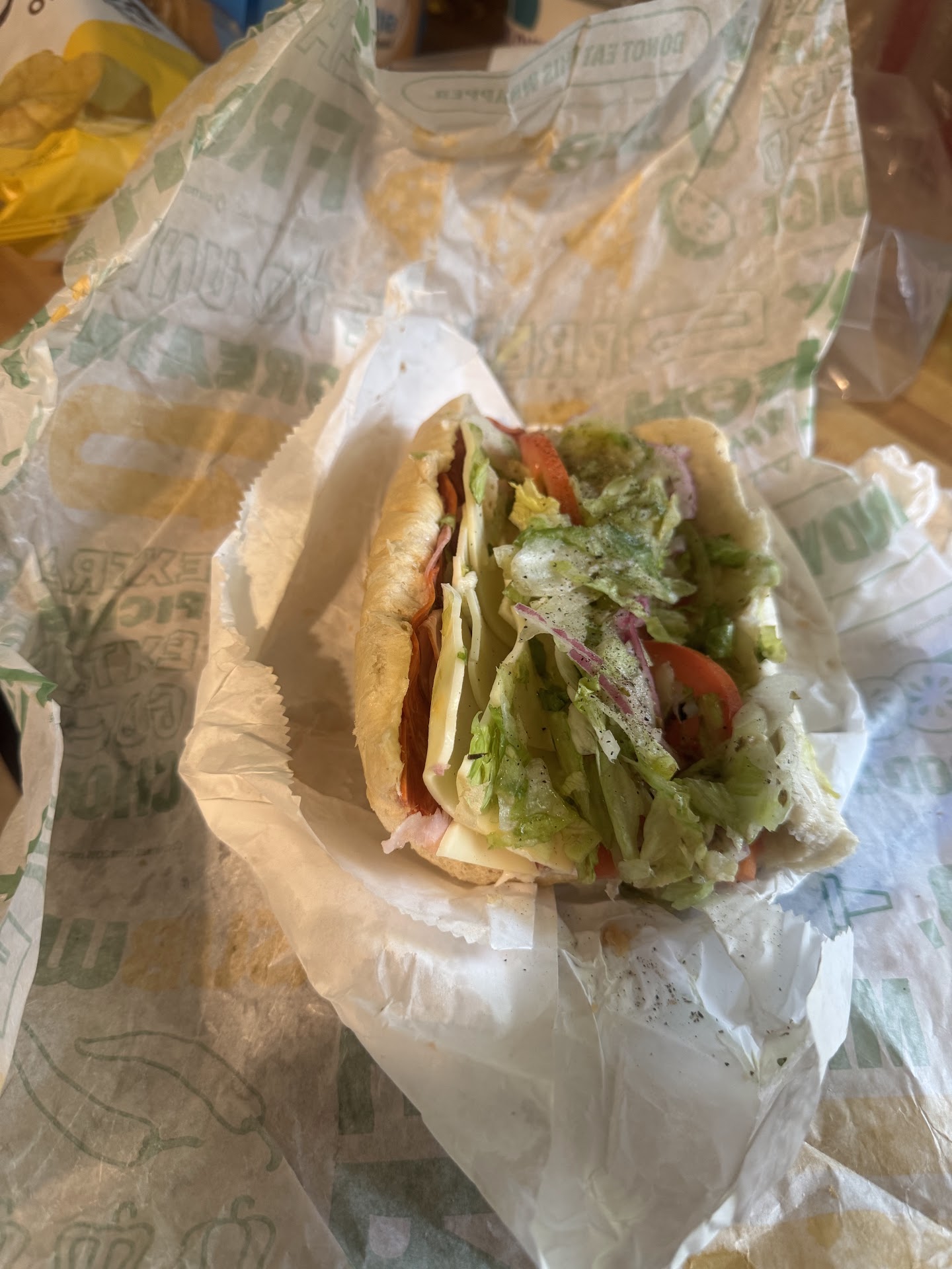 I'm a fan of Subway when I travel...healthier than some of the other fast food alternatives. Since I try to eat a more plant-based diet, I normally order the Veggie Delight. Some of the vegetables at this location looked pretty old. I had to ask if they had more spinach in the back, which they did get for me. But they were kind of skimpy when fixing my sandwich. Most locations recognize that you're not getting any meat, typically a higher cost item to them, so they are happy to load up the veggies. I had to request more of a couple items as they were spread so thin I'd hardly even notice them. At check out, I presented my Subway loyalty card and they said, "we don't do that". Anyway, it was OK, but I probably...