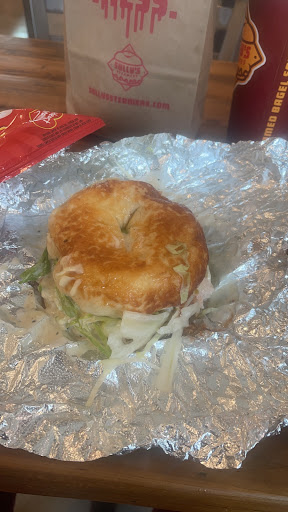 Great local spot amazing food. I didn’t even like bagels like that before. I came to accommodate my wife’s interests. The staff gave me a great recommendation (hunger games bagel) and was truly converted. The sandwich was beautifully made, tangy sweet and refreshing, and the chips just add the perfect level of crunch and salt to balance the sandwich. It was a bagel that comes with chips on it. They give you the rest of the chips they used in your bag. They make they’re cookies in house daily and they’re fresh gooey but structurally sound, rich and delicious. This is my new standard for a bagel sandwich and I can’t...