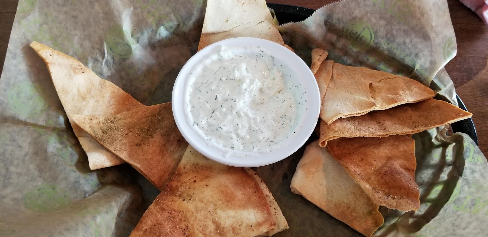 They cook the food to order, so while I'm waiting, most I'll grab a slice of their delicious Baklava...the only complaint about the Baklava is, it's small, but hey, maybe they are looking out for their customers' weight. 😋 Their fresh pimento cheese and crispy pita bread is absolutely delicious, too. Nothing tastes bad at Taziki's, and their dining room always has patrons, especially during lunch - the lines can get long, but worth the wait. Speaking of wait, considering it's a cook to order restaurant, you'll get your food within about 15 minutes.