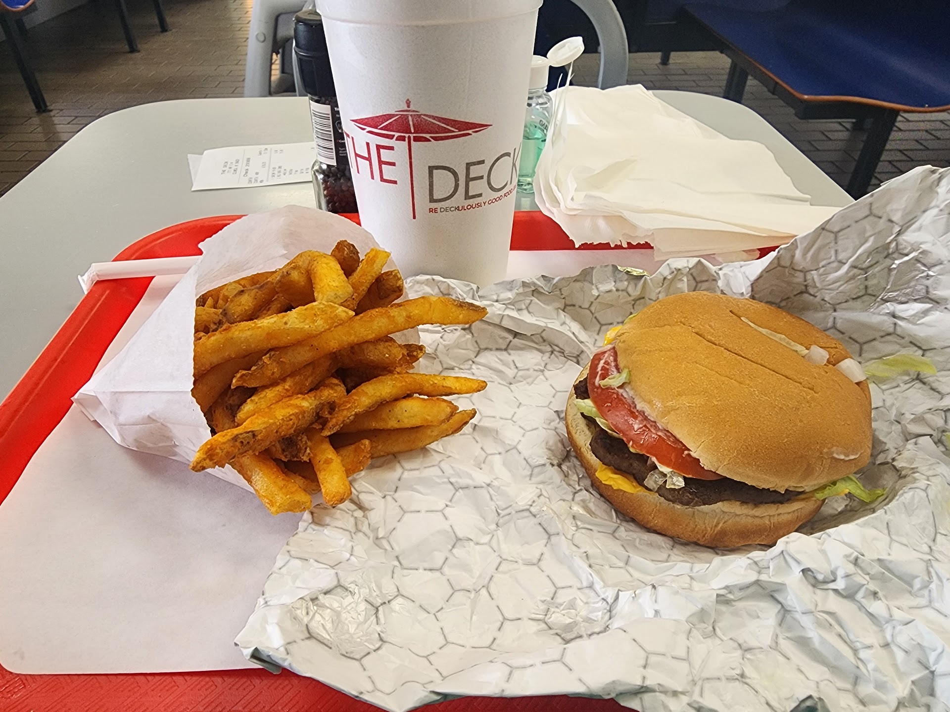 Read moreWe came into the deck as out of town visitors and tried the chili cheese burger and the deck. The chili tasted burnt and honestly it looked like dog food! The deck was a nasty frozen patty. The young girl at the counter didn’t speak to us and the restaurant was dirty there was not a...