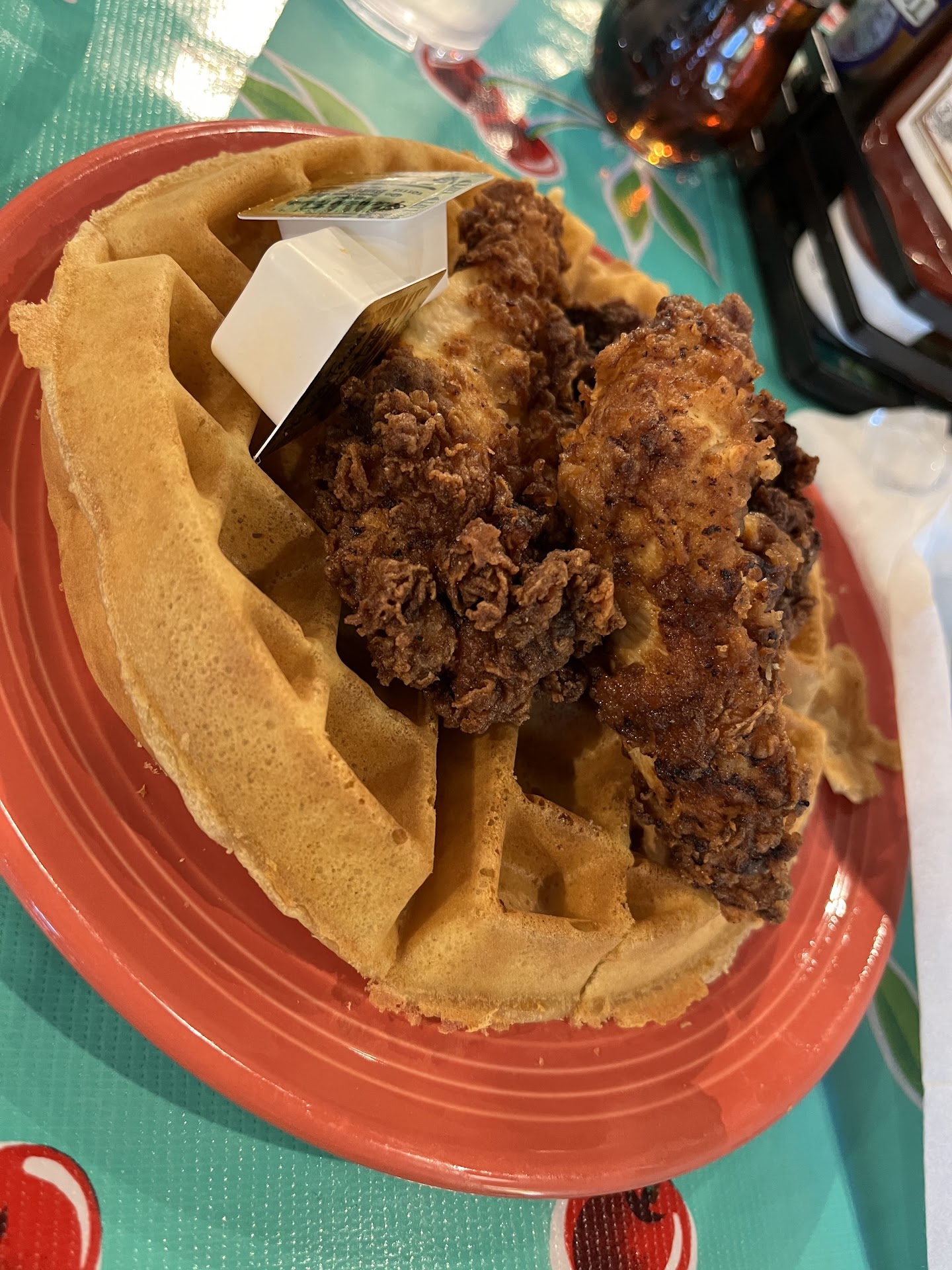 Read moreMe and my girlfriend came here one morning for brunch. We waited a couple of minutes at the host stand which was fine, my girlfriend used to be a host so we’re aware that hosts have other duties and it can get overwhelming. The host was very nice upon greeting us and led us to our table. We were then greeted by our server, I forget her name but she had curly hair. I ordered a Chai latte which she rolled her eyes to and I asked my girlfriend if she saw it and I was indeed not hallucinating. The tea came out relatively fast and then she took our order. This is when it got pretty bad. We waited 45 minutes for our food and I from my seat, I could see into the kitchen a waffle with the toppings that looked eerily similar to mine about 20 minutes in. I’m looking around for our server and she’s at the bar talking to the bartender and on her phone. She doesn’t move from the bar for the remainder of our visit. Our food is brought out (by the bartender!) and it was indeed that same waffle that I stared at for near thirty minutes. I ate my barely warm waffle pretty fast and waited about 20 minutes for someone to check on us so we could get our pay. We were very prepared to just leave at this point. A waiter finally stops by to check on everything and we asked for our check. He seemed very overwhelmed considering the other server just abandoned her section so I’m not mad at him that it took a while for the check to come back to me. I asked him why our server just left us and he said “Things have been weird today” which is not helpful. We were tempted not to tip but tipped 15% which is our bare minimum just because of the last server that got us our check. It was really upsetting because me and my girlfriend both have extensive experience in the service industry and we really try to give the benefit of the doubt but I was, for once, livid. We’re very good tippers as well, usually tipping 25-30% and I don’t know if it’s because we’re young but anytime we go somewhere that’s, ironically, not a bar, we are treated like trash by our servers. This place is...