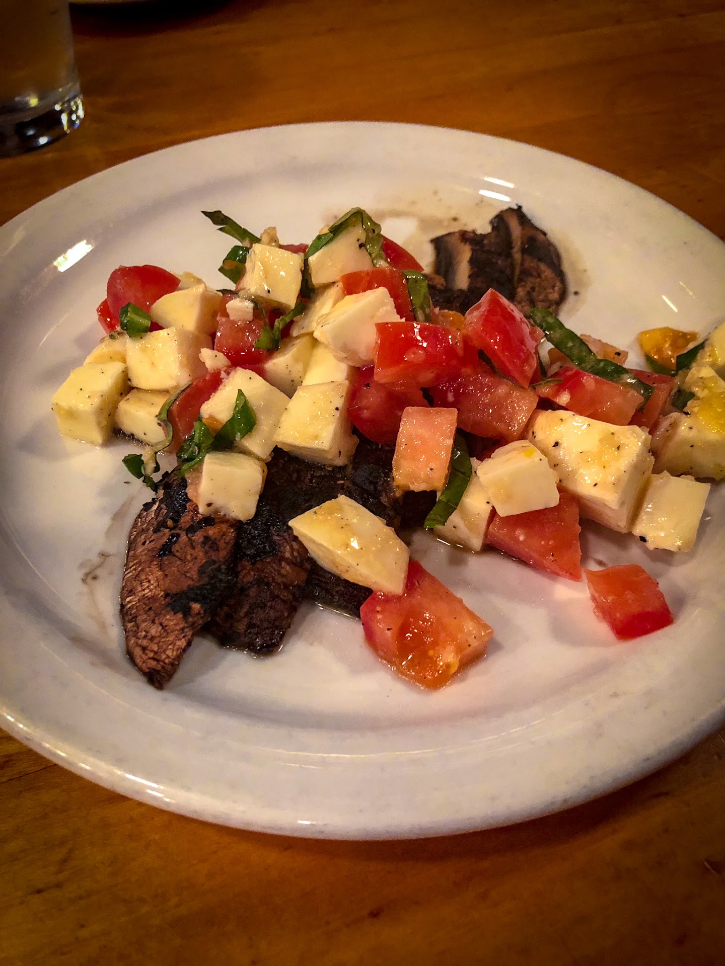 Parking was easy, with handicapped spots right at the door and no reservations were required (or possible} on a Saturday evening. My guest and I were seated immediately as all the tables were only perhaps 1/4th occupied. It was clean, and lit warmly without being bright. The styling was exactly as I remembered it at their previous addresses, solid finished wood chairs, tables, bar and booths with the original stained glass motiffs. They even still had the classic belt driven ceiling fan system. It all felt great and put me in a great mood tinted with nostalgia.