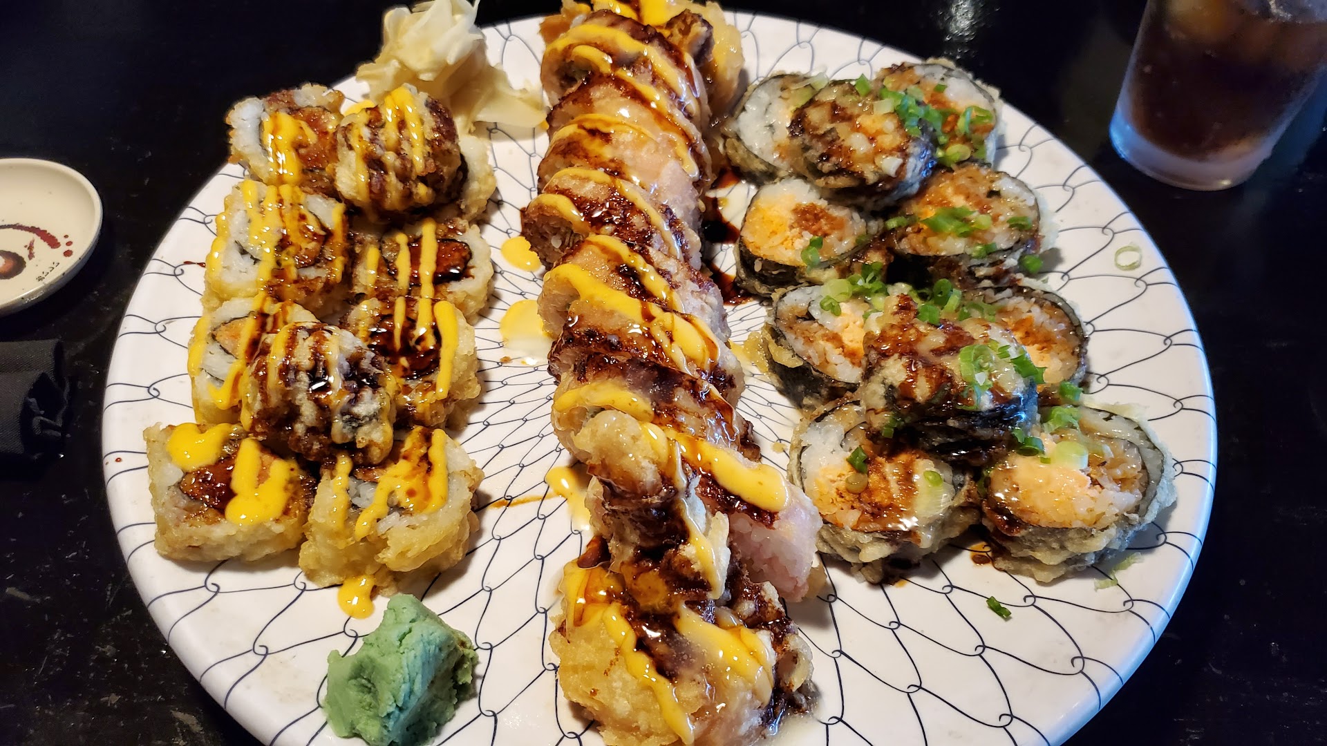 Well entrees come out sushi is all on one plate. And husband's roll has juice (cooked roll) from it and it is saturating all surround areas. We mention to the waitress this shouldn't all be on one plate and her response was to go get me my own plate to transfer food onto out of all of it we salvaged maybe 8 PC and my kids and husband enjoyed the rest.