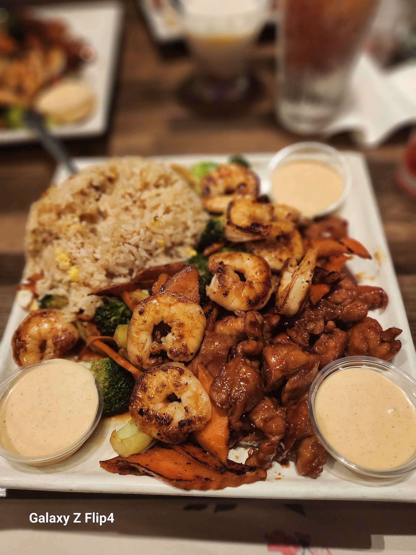 I am highly allergic to shell fish. However, my husband and daughters all enjoy it. We normally go inakaya but they are closed Mondays. So I order 3 sushi rolls and the steak and chicken hibachi entrée to share. My husband orders a sushi roll and states I would like this because she can't have any shrimp. My youngest daughter shouts yes she is very allergic. Each child order a kids hibachi meal. One steak and one with shrimp.