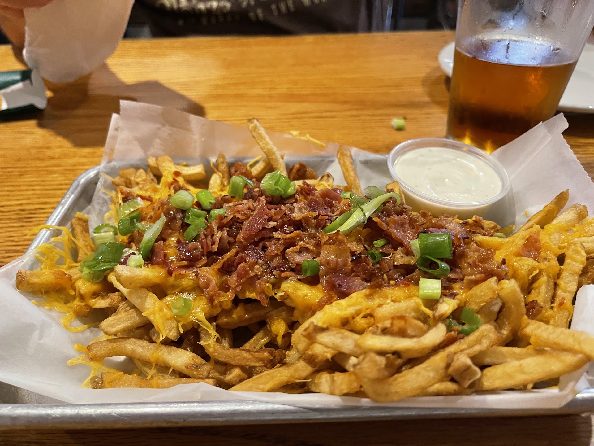 Seating was adequate, tables were park tables and had the typical wobble - our server provided napkins to stabilize the table. The music was loud, and made conversation difficult.