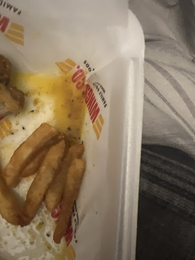 Food: Subpar Wings. Wayyyy too much salt or Lemon Pepper seasoning. Wings were a little too hard/burnt. Fries were good tho. The wings seemed to have been dumped from grease fryer to plate because the amount of grease that coated the fries and chicken...