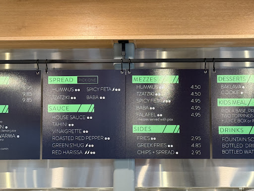 Read moreTried out the food at this location and was pleasantly surprised, given that I didn't know what to expect. There's plenty of options for a mediterranean-style meal, and the staff walk you through the options as well. Staff were very nice and patient with looky-loos. Helpful tip for new diners - hang back and read the menu, or look it up online before you get in line to place your order so you don't hold up the line. There's also plenty of seating in/outside of the location to enjoy your meal. This location gets a fairly heavy amount of lunch traffic and to-go orders, and with the tight parking, plan your visit...