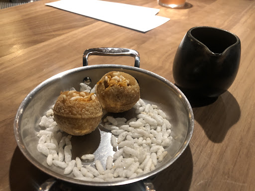 Read moreFrom the moment we stepped into Agni, we embarked on a culinary journey that tantalized our taste buds and warmed our hearts. That started even before we sat down. Because it was cold outside, we were offered a shot-sized hot orange ginger mint tea to warm us up. It was outstanding and a foreshadowing of what was to come. The six-course tasting menu, interspersed with delightful snacks, was nothing short of a masterpiece. Each dish was a creative, showcasing the chef’s ingenuity and passion for flavor. Many dishes were also plays on experience's that the chef had going up which was part of the explanation as the dishes came to the table.