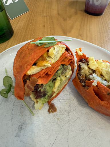 Many -- but not all -- of the items on the Alchemy Kitchen menu are vegan or vegetarian. They have three different menus: Breakfast, Brunch and Lunch. They are open only between 8:00 a.m. and 3:00 p.m. and are one of the few restaurants in that neighborhood that are open that early in the morning.