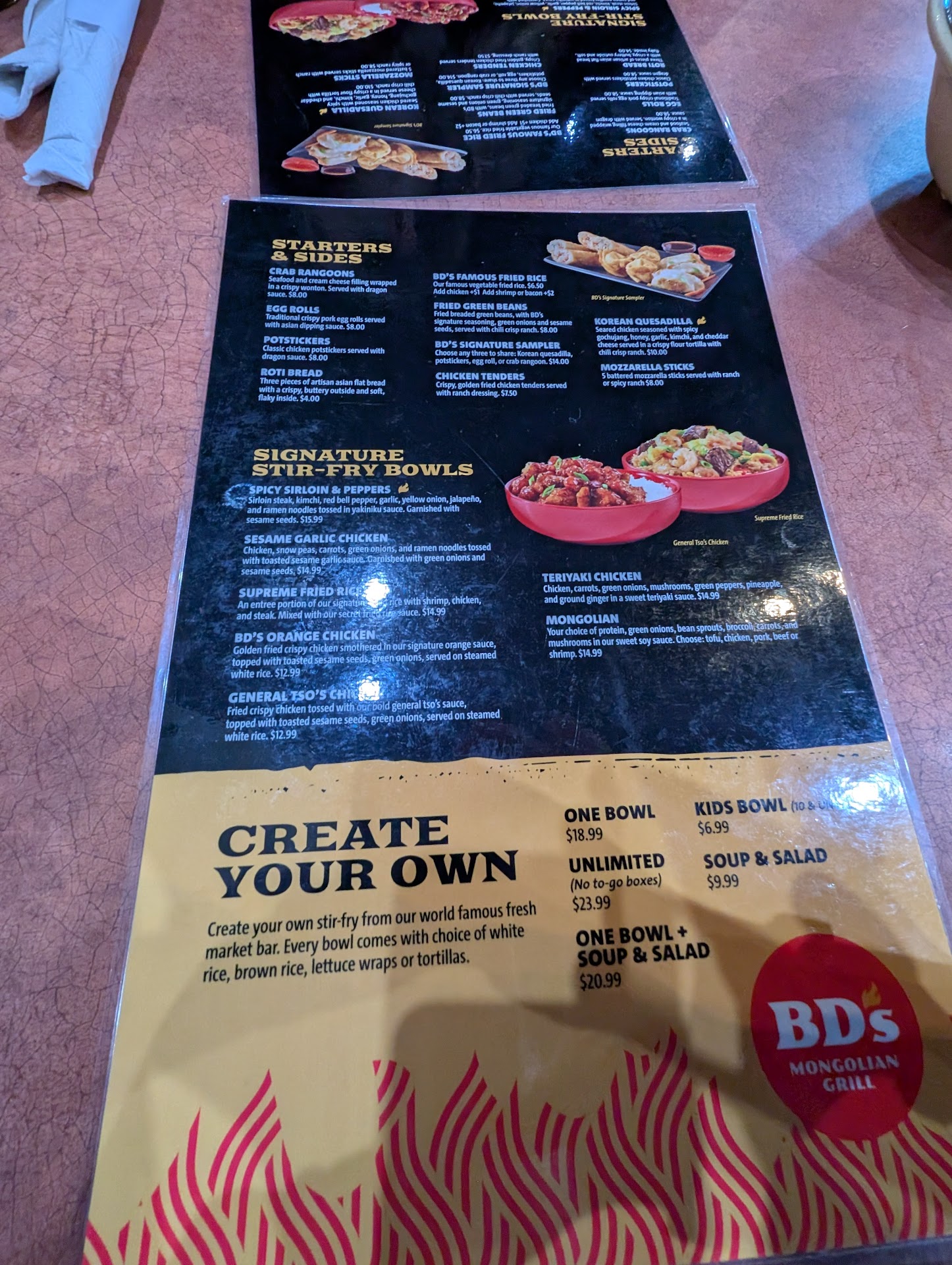 Read moreWe had a reservation for 6pm. We arrived promptly at 6pm. The hostess didn't know where to put us, as they were short staffed (like everywhere, nothing new). Eventually she seated us and said someone named Rachel would take care of us. We sat there for about 8 minutes before a male waiter named Brian attended to us. He mentioned that he noticed that we had been waiting a while, so he was going to take care of us. We never saw Rachel. We ordered our drinks, two regular bowls, and one for my son. They had some new system with post-it-notes that wasn't really explained well. The servers bring your food to you after it's cooked. You don't wait with your food anymore. My son and I went up (we were told to get started), but we didn't have the post-it-notes, so the cooks were confused. After we sat back down, we waited...and waited...and waited some more. My wife went and got her food in the mean time. Eventually her food was delivered, then mine. My son's went missing. Both my wife's and my food were luke warm, because they had been sitting on the counter waiting to be brought to us. It was also determined that yes, indeed, my son's food was gone. So we got another bowl and I got his food again. I mentioned to Brian that no, I was not blaming him for anything, but our food wasn't hot and that it was ridiculous that my kid's food was missing. He mentioned he would get the manager. We then eventually got our rice. My wife and I had finished our food by the time my son got his food. Brian was extremely apologetic and said the manager would be over. Eventually he came back and said they were only charging us for one bowl and nothing else and allowed me to go back up for seconds to take home. We never saw a manager. The whole ordeal wasn't as bad as this may read, but it sure was obnoxious. Also, they are not CCW friendly. They have the tiniest "no gun sign," on their front, at the bottom where the glass meets the floor. Move that sign up so people...