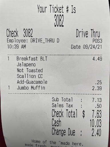 Read moreAbout a week ago I stopped here and wanted to give it a try. I ordered the Mediterranean bagel on an everything bagel with hummus on it and jalapeño cream cheese on the side and all the veggies that it comes with. When I got home (about 25 miles from Columbus) I pulled the sandwich out of the bag and the whole order was wrong. There was no hummus on the sandwich, they gave me a plain bagel, and the bagel itself was absolutely terrible. The jalapeño cream cheese was literally just cream cheese with old jalapeños thrown into it, the vegetables weren’t cut up. I called the store when I got home, explained that I was a bit annoyed about it and I wanted my money back. I left my name and number for the manager to call me back, that never happened. I never received my money back. I’m very disappointed with this place, and I do not recommend stopping here and...