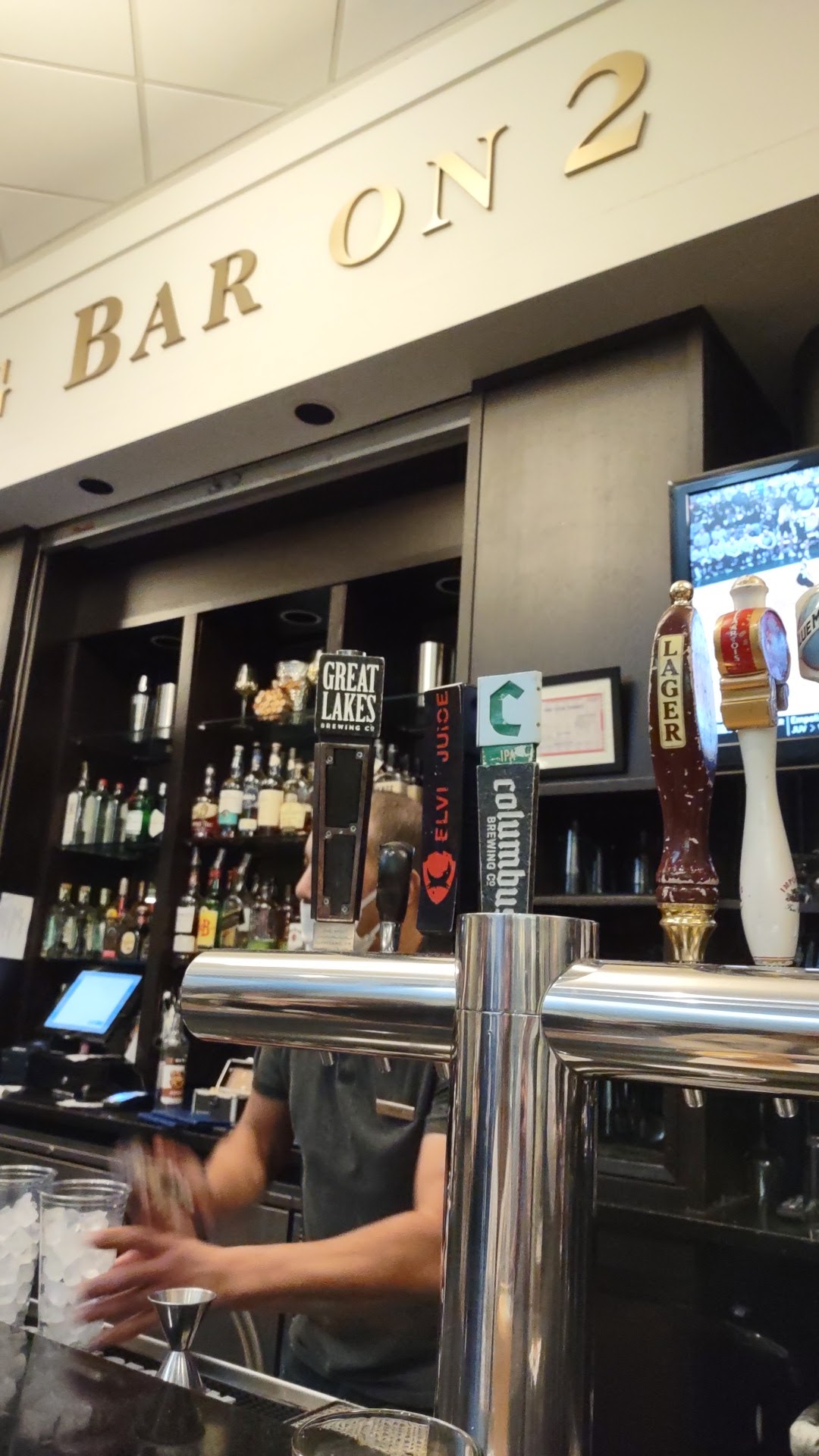 The Big Bar on 2 is the bar and dining section of the Hyatt Regency hotel. It is conveniently positioned right in the middle of the hotel by the escalators and several steps away from the ballroom areas. The dining section itself has about maybe 20 - 25 tables. Solid seating area for guests during conventions but not quite as large as the dining/ bar area of the Hilton hotel nearby. I can image the area getting filled to capacity rather quickly when larger conventions take place in the area. This review on the bar service. I was in town for an animation convention and the hotel bar provided a special drink menu for guests that weekend. The drink was called "The Scallywag". It was essentially an Arnold Palmer with Captain Morgan Spiced Sum. The earthy taste of tea leaves balanced with the freshness and sweetness of lemonade combined with the spice of Captain Morgan rum put this drink over the top. Kudos to the head mixologist at the hotel to come up with such a great simple drink. Also the bar tenders executed this drink perfectly the entire weekend. The bartenders were quick to take orders and produce drinks at a steady pace. I didn't have to wait that long for drinks. It also helped there we people on the floor taking drink orders and running orders during the...