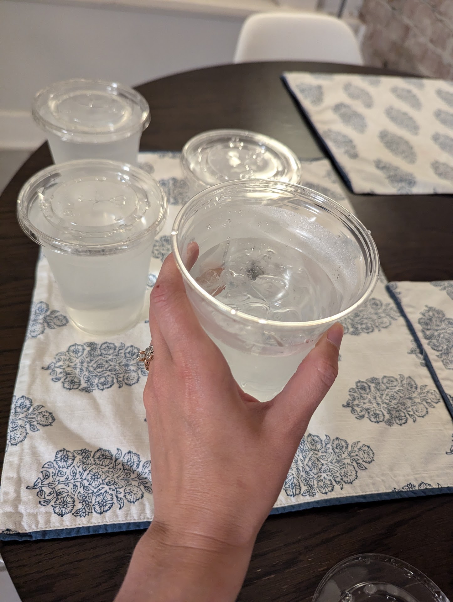 After enjoying several libations and closing my tab, I asked the bar manager-esque man for two cups of water to carry home to my desert of an AirBnB. This wonderful man chuckled, told me I should have stayed at the Hyatt, and asked if I could manage carrying four cups. Here I am, a short walk later and several steps closer to proper hydration.