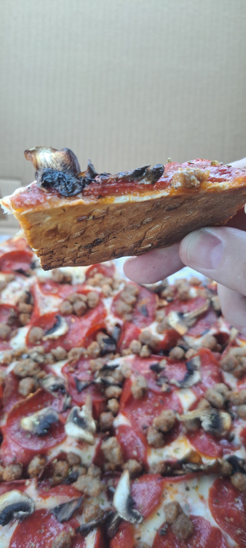 The toppings, while plentiful, failed to salvage the disappointing base. Despite opting for a variety of toppings, including pepperoni, mushrooms, and bell peppers, they were unable to compensate for the absence of sauce and the lackluster crust. Each bite felt like a chore, as I struggled to muster enthusiasm for what should have been a delightful dining experience.