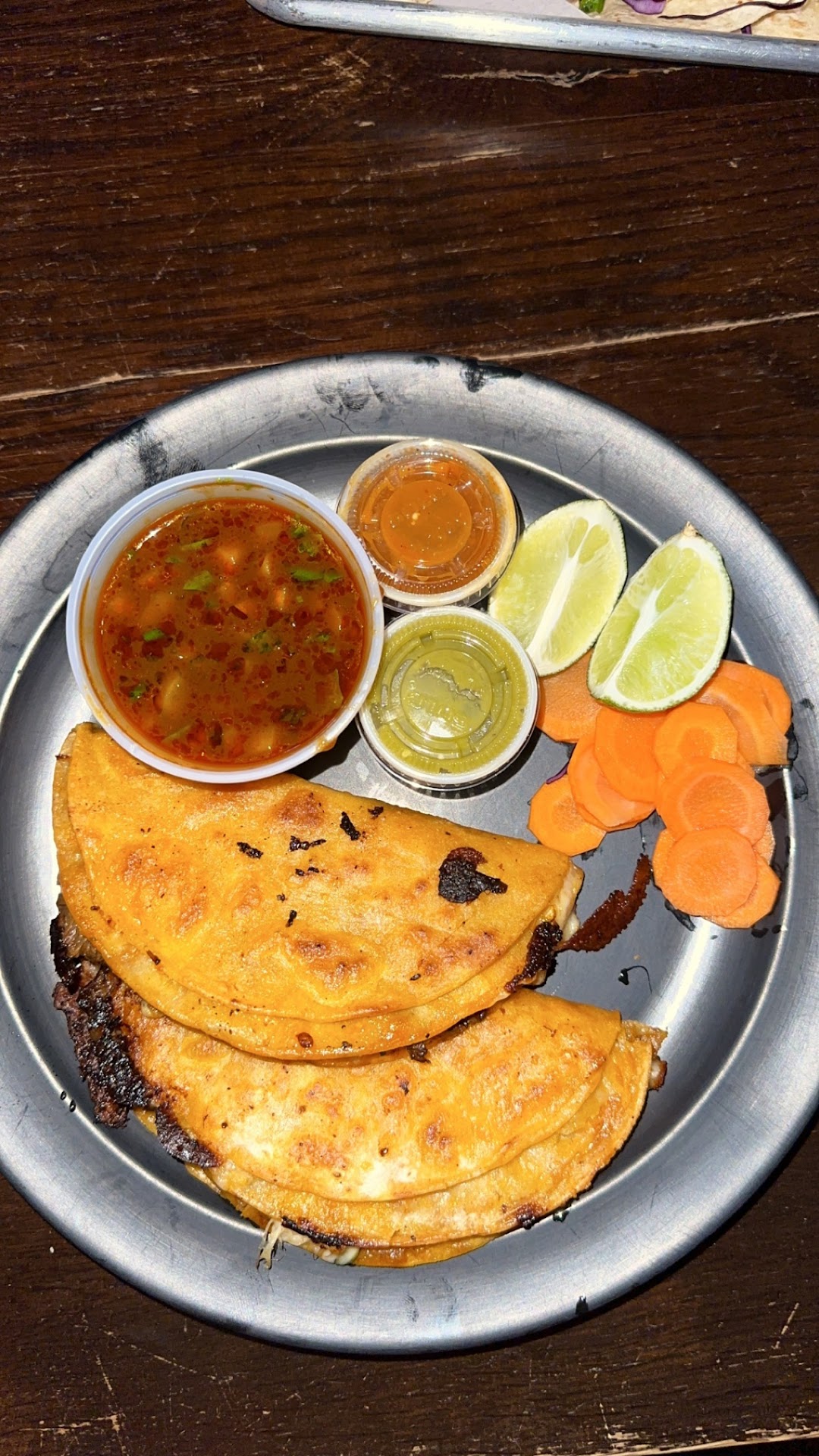 Everything here is just great. My favorite is the Birria Tacos. The meat is delicious and the consume goes really well with it. The potato wedges are crunchy on the outside and fluffy on the inside, and the rosemary salt makes the perfect seasoning. All the dishes here are balanced in flavor and color and are really fresh and presented well. Some dishes even have these little marinated carrot slices on the side, which are surprisingly pleasant.