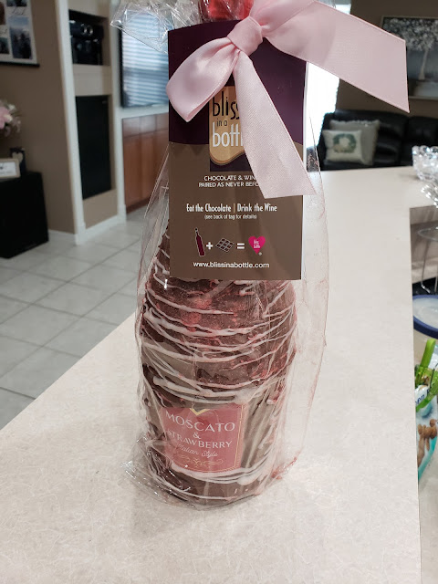 As far as Bliss in a Bottle, they have unique going on here - pairing chocolates with wine. It's an interesting, delectably concept. The wine bottles are artistically designed and visually pleasing. Please, stop in for a visit if you're looking to treat us or that...