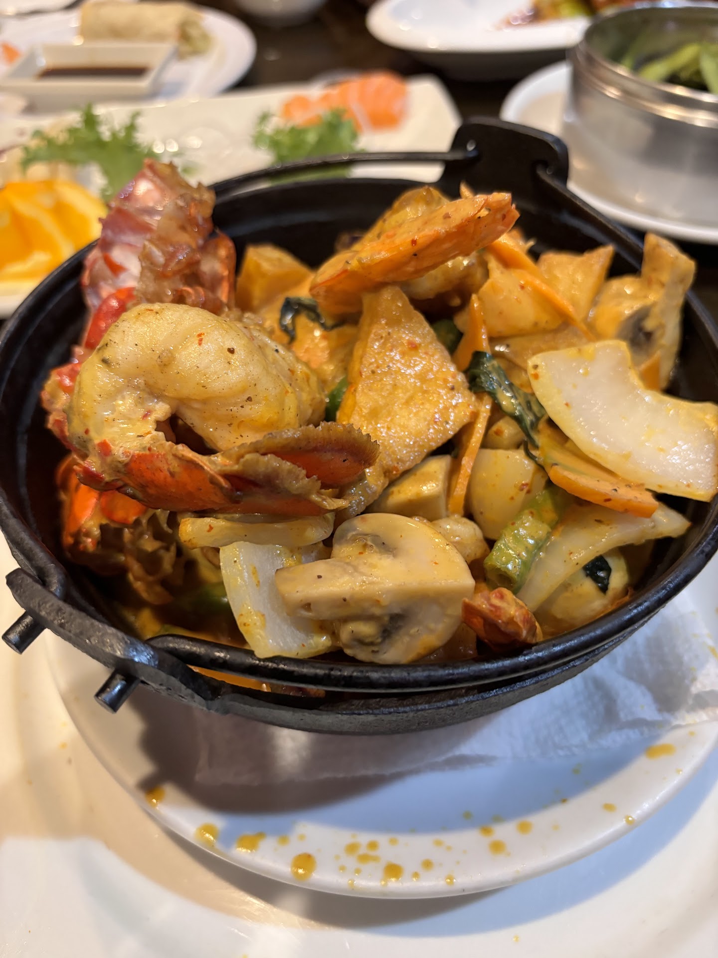 My last meal I had Crispy Red Snapper: I order this almost every time and it is my favorite and what I think is one of their very best dishes! Crispy, a little spicy, always delicious, full of complimentary flavors. Fire Wok (pictured): Thai curry lobster, shrimp, scallops and more. All of the seafood is given in hearty and plentiful amounts. It’s a pretty spicy one, but I couldn’t stop eating it! Delicious. Octopus sashimi: I order this every time, and every time it is fresh, perfect consistency, plated beautifully. Thai Spring Rolls: I could eat a bucket of these. Crispy on the outside, packed full on the inside.
