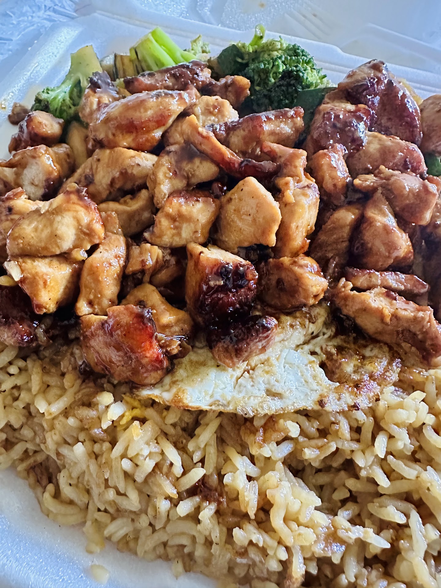 Ā Ā Ā Read moreI order from here often, mainly because my daughter likes it. We ordered online from their website toastee( something like that, itās their online ordering system). I ordered steak with white steamed rice and broccoli . We get to the restaurant and they say they are out of steamed rice. So I was okay with fried rice and asked for no egg. They say they cannot do that even though online it gives you the option to have fried rice with no egg. Disappointing. I have ordered from this location several times but I will not be anymore since they cannot accommodate my order without egg. I use to get this with my daughter but lately just started going for her because she still liked it. But I stopped getting it for myself because the steak is so hard and chewy. I use to chew the steak and spit most of it out because it was so tough, it was like a choking hazard. Then I started getting chicken and that was tough too and it was salty. They do give you a lot of food but it looks better than it taste. And with the whole egg situation today I am just done with this place. I will cook her hibachi or find another spot, but wonāt be stepping foot back in this location or any...