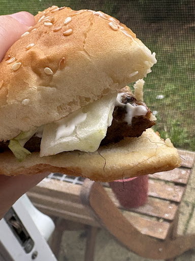 I made my order, part of which was the Spicy Chicken Jr. which I asked for the sauce on the side since I had never had it before so I preferred it on the side so I could taste it before saucing the whole burger.