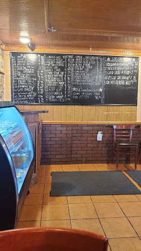 Their lunch menu includes gyros, subs, Reubens, wraps, and panini sandwiches. Their menu is handwritten on a chalkboard on the east wall; they also have printed laminated menus that may be easier for some to read.