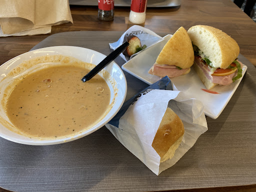 Read moreI'll be honest I had high expectations, and I was left a bit unimpressed. The creme brulee cheesecake is what saved this from getting even a lower rating. That was absolutely delicious. When I read "Ultimate Grilled Cheese," I was expecting it to be way bigger and stacked. I could easily fit the whole sandwich in just the palm of my hand. I wish I had taken a picture to show you how small this sandwich was. It's soooooo small. The flavors were great. It just had me disappointed on it's size, especially at the price they charge. The lobster bisque was delicious, but Zoup still does better. What really left a bad taste in my mouth was that one of the staff members who could not put a smile on his face and had no manners. He was the opposite of pleasant... yet it asks for you to leave a tip at checkout? What am I tipping if you're not coming out to clean tables or offer to refill drinks or take your trays when you're finished. Everything was self-serve except when you're ordering. So, what am I tipping for? There were at least four tables that were dirty. Say it was the lunch rush? I've been in management positions and in the service industry... there's no excuse for I wouldn't have called that a lunch rush. It's no wonder the place was basically empty. A couple people trickling in and out. I wish...