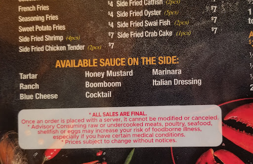Read moreVery disappointed I paid 101 for a boil my king crab was over cooked so I took it back the second one was the same and my lobster tail was the same I donât know if I will come back !!!!' UPDATE.... 10/04/24 tried to give this place another try but once again same crap I got the king crab and I got a lobster tail shrimp potatoes corn first of all the king crab was once again overcooked I couldn't even get it out of the shell. It was stuck in the shell and the lobster tell this time when I pulled it apart it was black on the inside. I've never seen that before in my life. I don't think I'm done with this place indefinitely. They don't care about the quality of food anymore because for once again $109 this time you would think you would give somebody some quality food but clearly you don't care at $65 a pound for a king crab and it's overcooked and you can't even get it out of the shell and that's unacceptable and to get a lobster tail and I've eaten mini lobster tails cooked them myself . I've never seen a lobster tail when you pull it apart. Be black on the inside. Just give up at this point. 1/3/2025