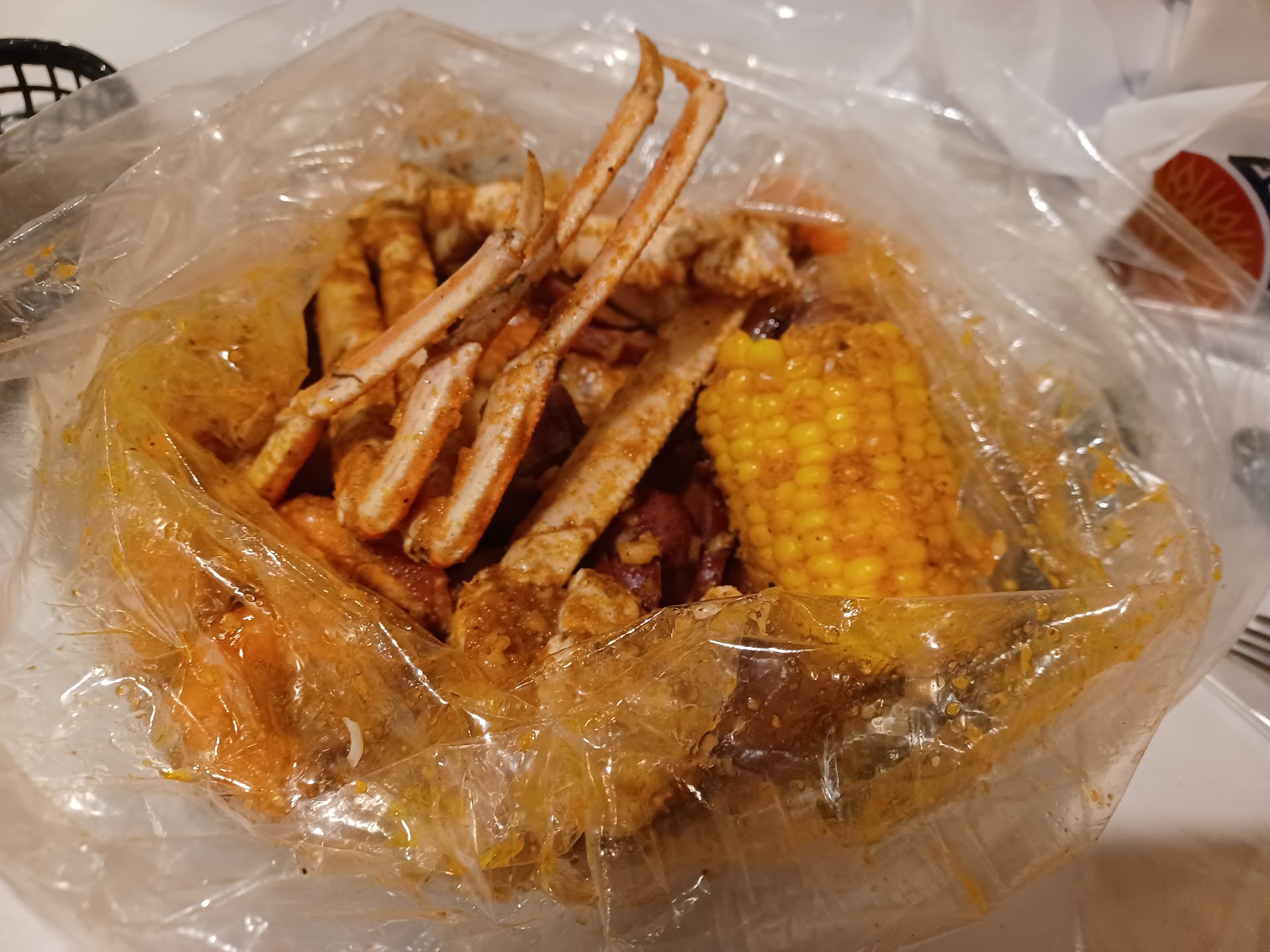 The boil can be done in about 6 different "combo" plans ranging in price from $31 to around $48 depending on how much and what types of meat you have in there. My $31 "A" boil (picture 2) had crab legs, shrimp, kielbasa type sausage, several potatoes and a hard boiled egg as an example. You choose one of around 5 or 6 sauces that get put in the boil bag. (You can also get extra sauce on the side but there's a LOT of sauce in the bag. That really feels like overkill to me..) You also choose the spice level ranging from mild to extra hot.