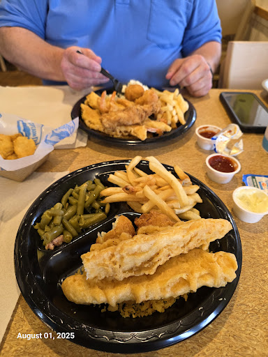 Ā Ā Ā Read moreThe food was good once the order was correct. We had ordered 2 fish &shrimp w/ fries and a 2 piece fish and fries w/ bread sticks on all 3. One of the fish and shrimp had a crab cake instead of shrimp because the guy that started ringing up our order wasn't paying enough attention to what we were saying, barely recognizing that we were ordering because he was too busy talking to his replacement that had shown up for work. He didn't cash it out before handing the till over to the young lady coming in to replace him and didn't even let the young lady know he hadn't even to take our money. The young lady did finish it out though and was very nice and respectful, as well as making the plate that had been made wrong was fixed correctly. She had a great personality and a...
