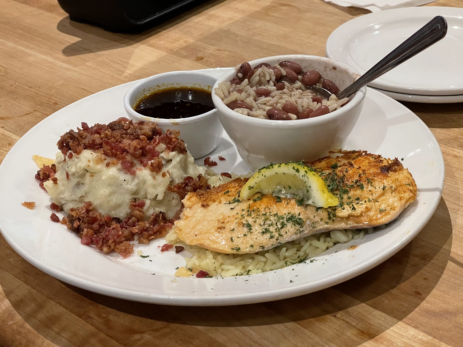 I passed through Columbus on my vacation, and decided to take my dad and brother out to dinner at Cheddar's. I remember going when I was younger and it used to be very nice, super quiet and relaxed but still a better dining experience than most of the other affordable options around town.
