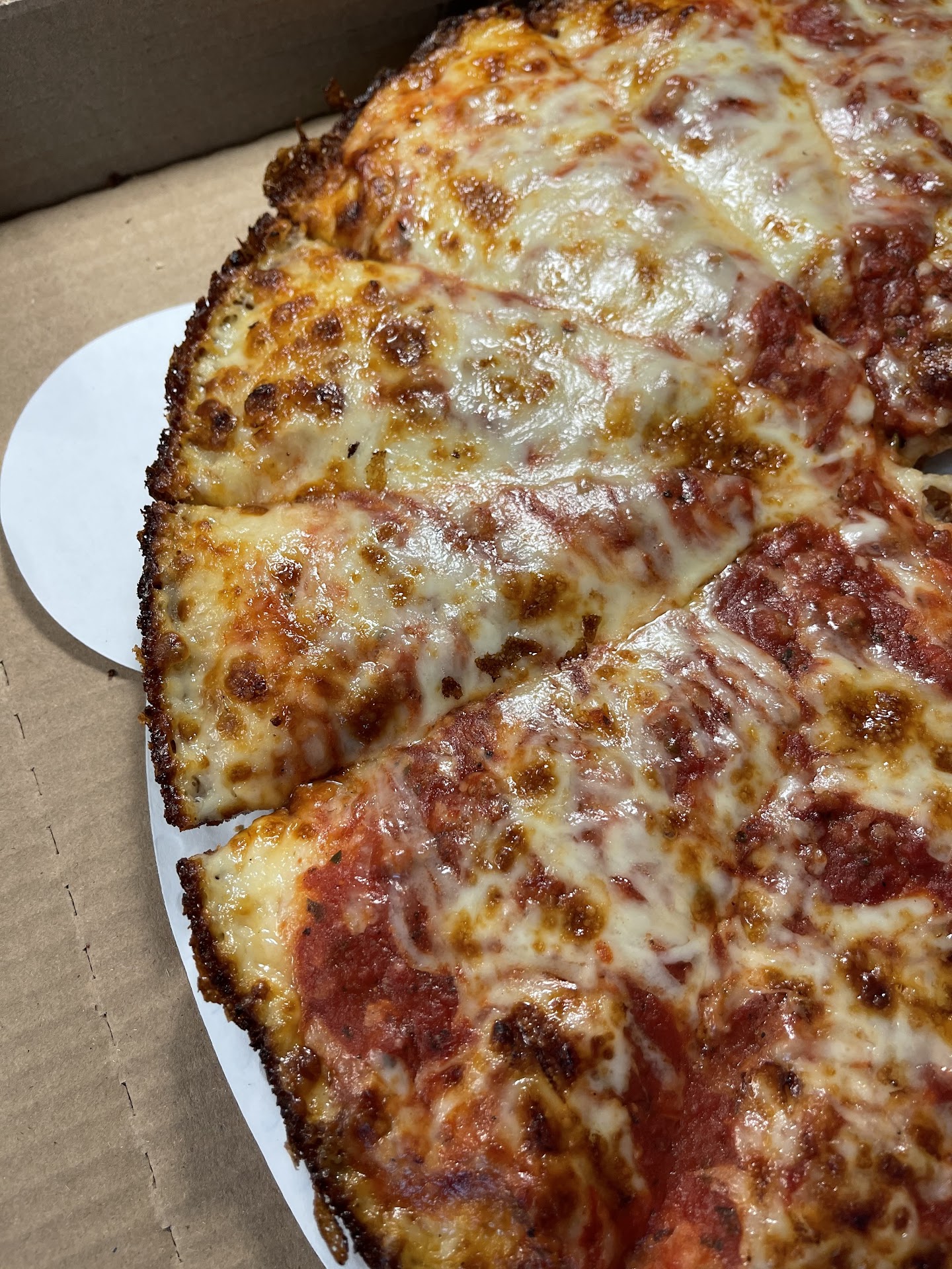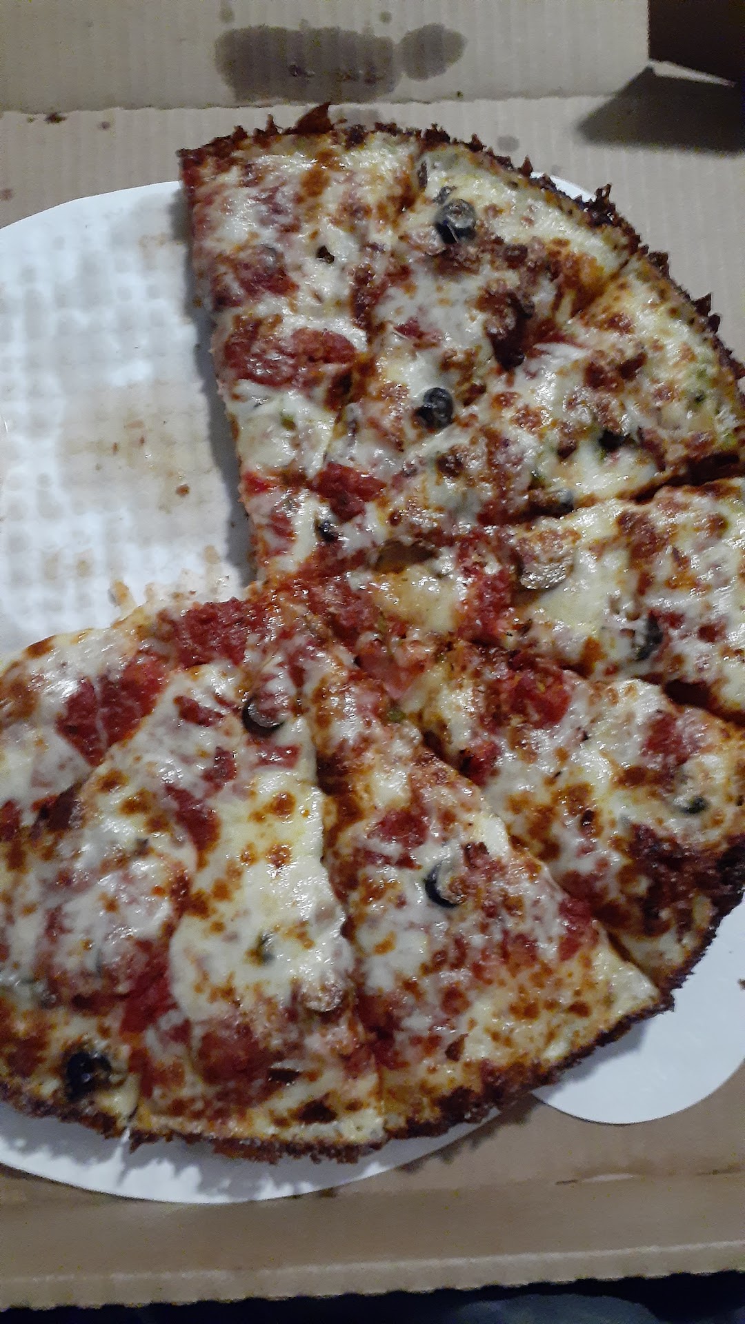 Read moreDeep dish is delish! We really enjoy the deep dish pizza here and find it to be consistently fresh and delicious. The crust is crunchy and has just the right amount of olive oil to be decadent but not greasy...yum! It's a satisfying bite as you crunch through that crispness into the fresh toppings that sit between not too sweet sauce, cheese and pillowy crust! No matter the toppings this is one of our favorites here. We also enjoy the salad bar... you can make a very nice 1 trip salad with a pretty fair variety for a good price. The last time we visited (October 9) the breadsticks were disappointing, they perhaps were not done enough or new recipe? They were heavy, not airy and chewy like we remember. The service on this day was slow. The wait staff was friendly and efficient but delivery of everything took longer than expected...we sat outside so to be honest I don't really know how many tables there were occupied inside or how adequately staffed they were inside. We just assume there was more work than available hands. :) Our food came to us fresh and hot so it didn't sit on a heating unit waiting...but our drinks and salad plates took longer than expected. Still a great...