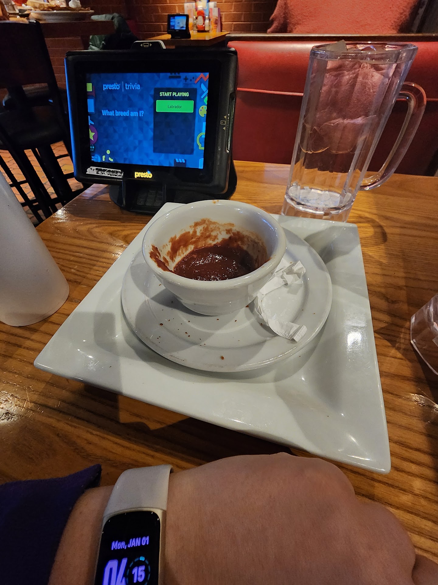 Read moreCame here for a lil solo birthday dinner. Got here around 3:20, and it took a while just to get a drink and appetizer order put in. It's 4:07 now and they finally took my dinner order, which I ended up asking to take to go because I've been sitting here with an empty plate and cup watching others get served at their tables. Multiple servers walking around and no one came to see if I needed anything. The restaurant isn't even all that busy either considering I'm here in between lunch and dinner. I placed a dessert order in the app on my phone before they came to me to finally take my dinner order. Super disheartening because the last time I was here and ordered to go it was decent and efficient service. Frustrating to hear servers in the kitchen just chatting, or to see the bartender checking his phone next to the computer behind the bar. They(tablet says his name is Ryan) were supposed to be my server but it seems they helped everyone but me. Hopefully my food comes out okay. I didn't want to take my birthday dinner to-go, but I'm so upset I just can't stay here and eat now.