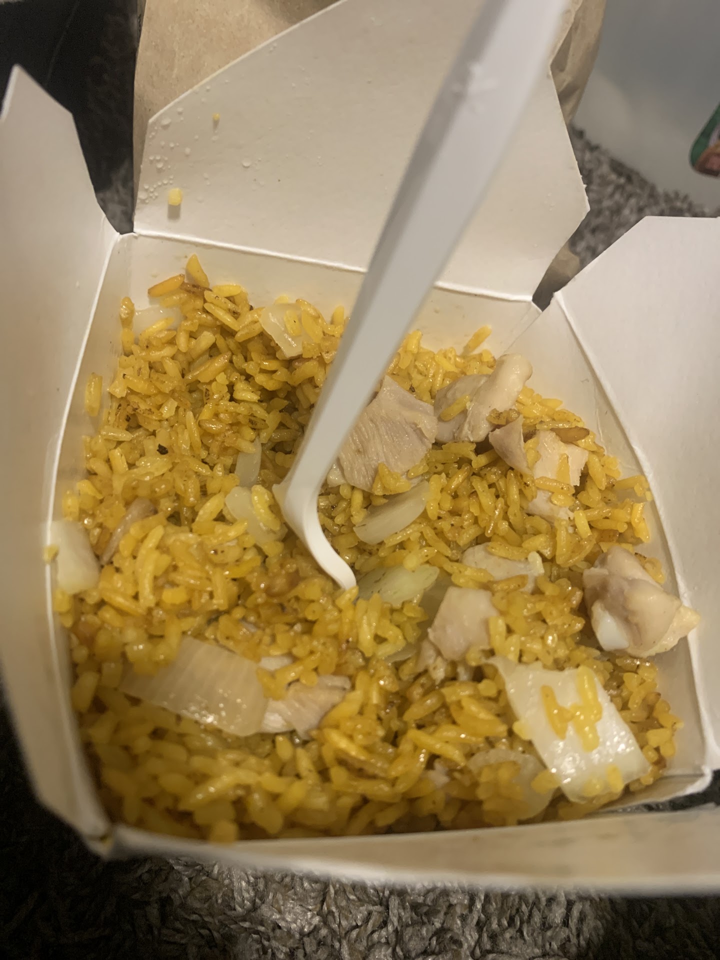 One star for food because there's absolutely no taste. Zero nope nill. How is Chinese food flavorless? Even peanut oil should at least give it some taste. But I don't even think that's what they fried with. I'm not sure how this was prepared because I can't taste anything. And for clarification I ordered beef fried rice. There is rice. There is what I can assume to be beef but if I was blind I would definitely disagree. I would rather eat nothing than to even eat this. 3 stars for service rather than five, while your serving something barely edible, serving this garbage is NOT what your predecessors served which Chinese food so popular. Three stars for atmosphere because it's your common drab...